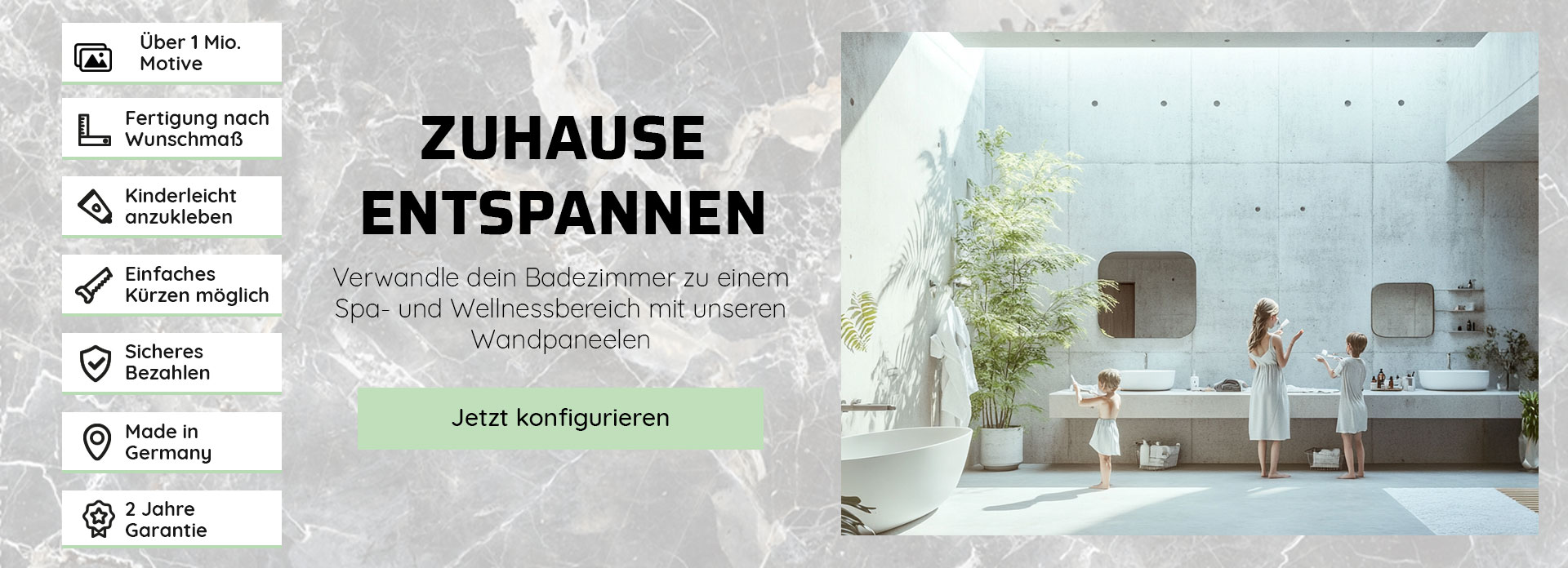 Im Gegensatz zu herkömmlichen Tapeten oder Folien werden unsere Wandpaneele als feste Platten geliefert, nicht als Rollen. Dies garantiert eine einfache und präzise Montage ohne Falten oder Verzerrungen. Unsere Wandpaneele sind nicht nur wasserfest, sondern auch pflegeleicht, sodass sie sich besonders gut für Bereiche eignen, die regelmäßig gereinigt werden müssen.