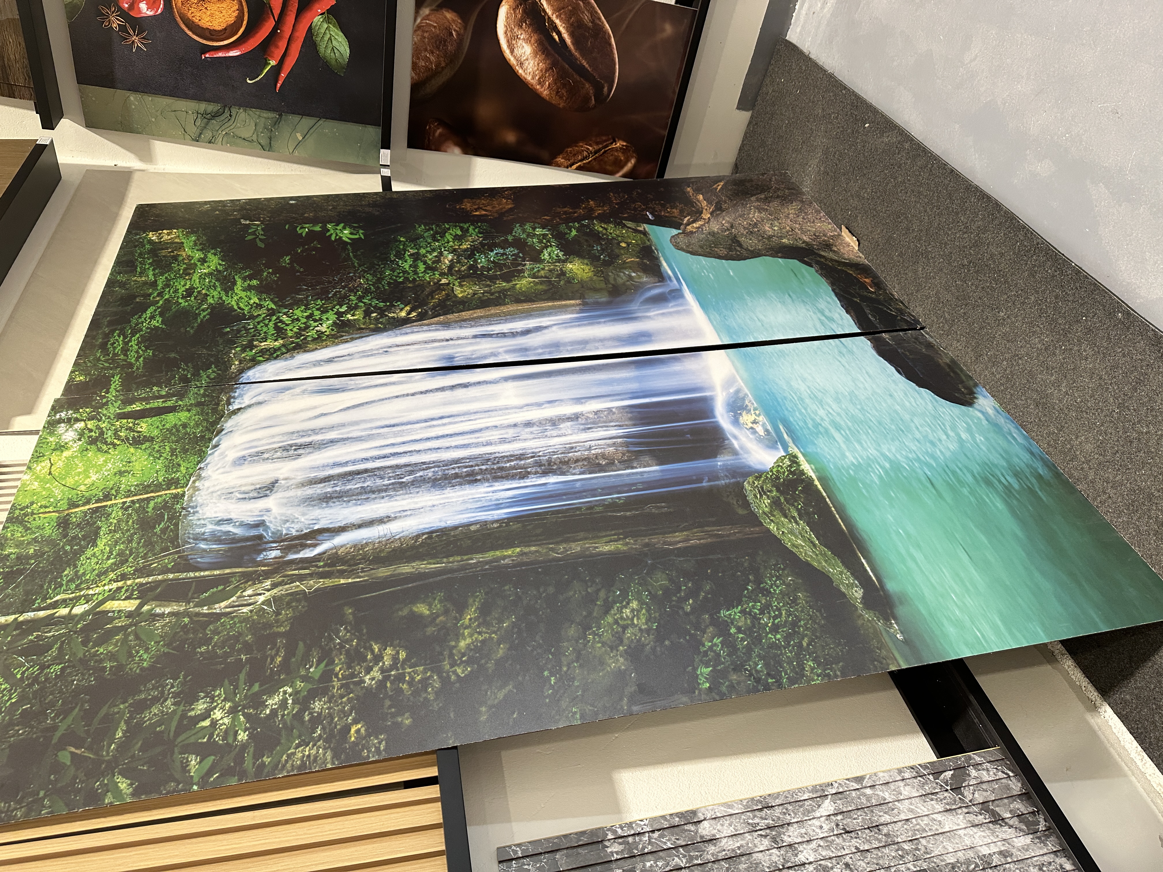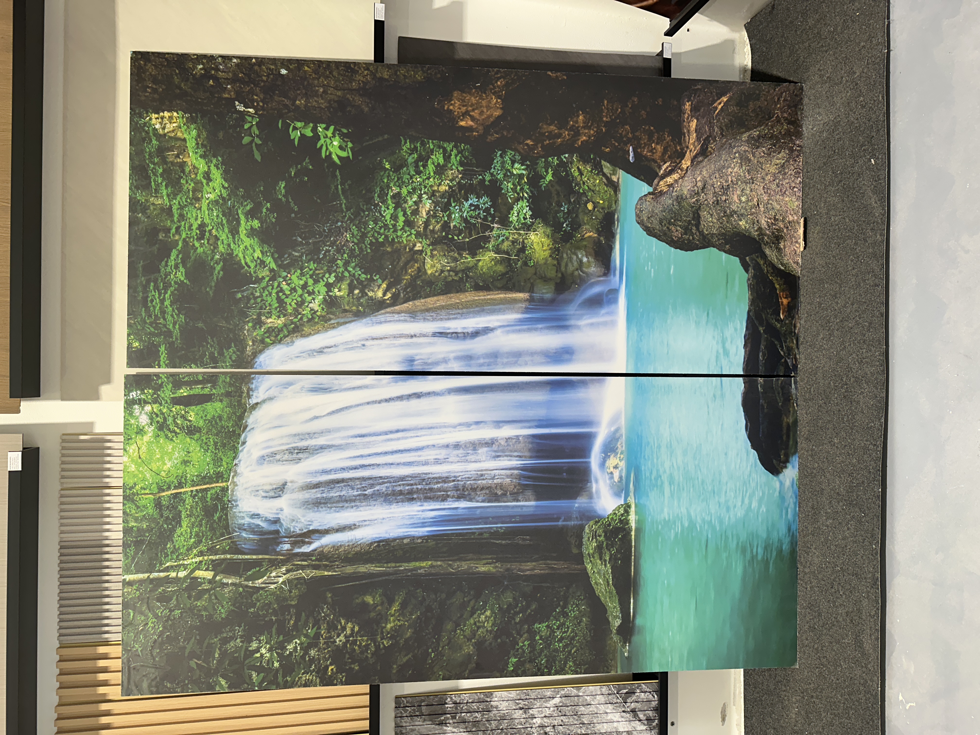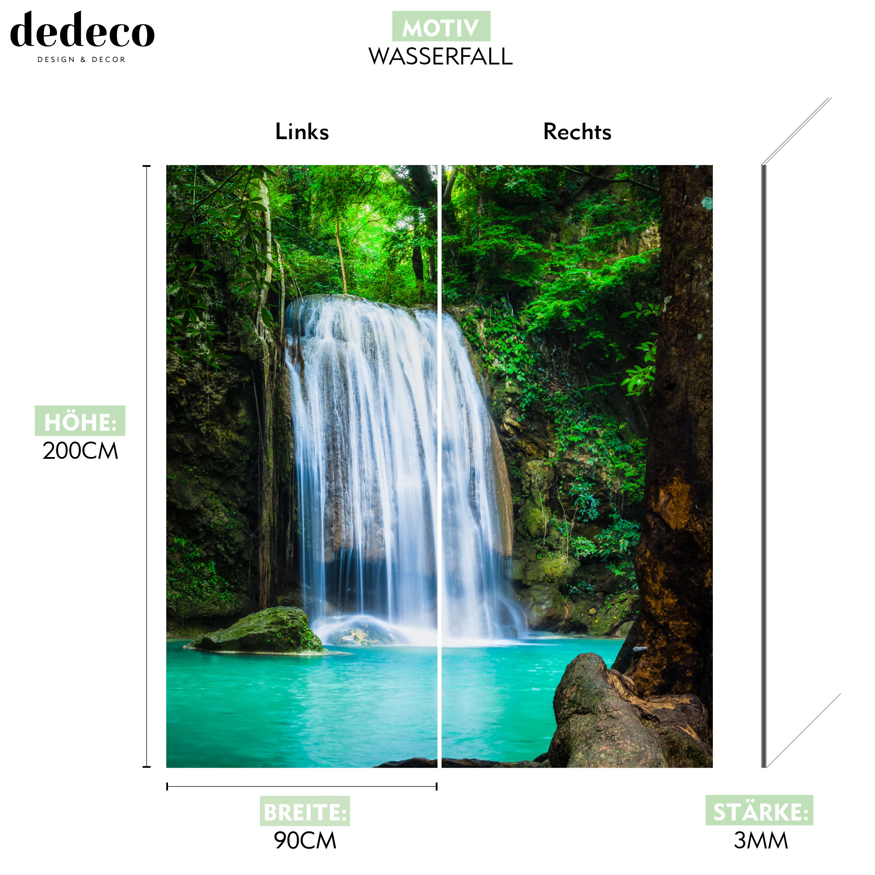 Duschrückwand aus Aluminium, 2tlg., Motiv: Wasserfall V1, Größe: 200x90cm, Classic matt (B-Ware)