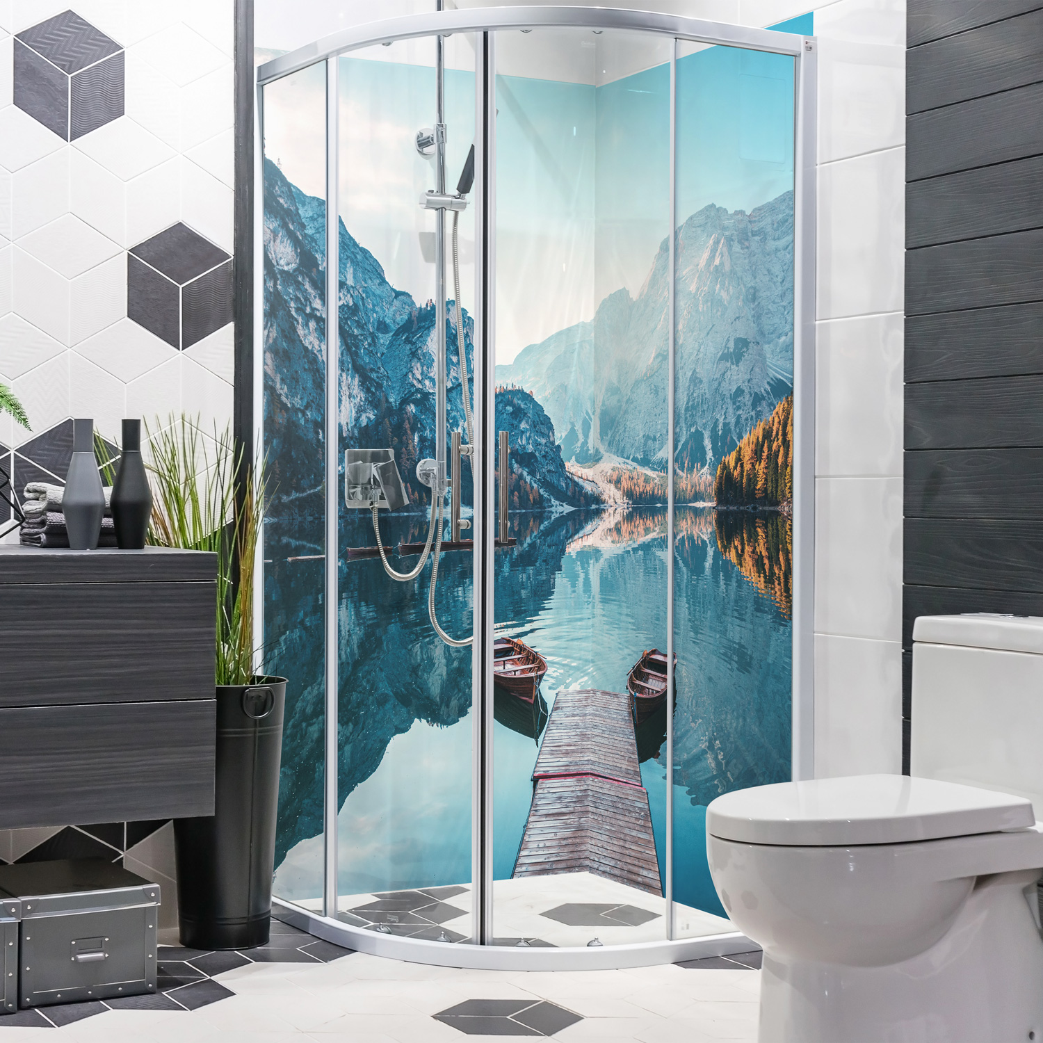 Duschrückwand mit Berg V4 Motiv, als Badrückwand zum Fliesenersatz