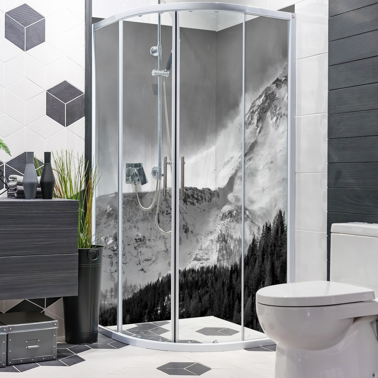 Duschrückwand mit Berg V5 Motiv, als Badrückwand zum Fliesenersatz