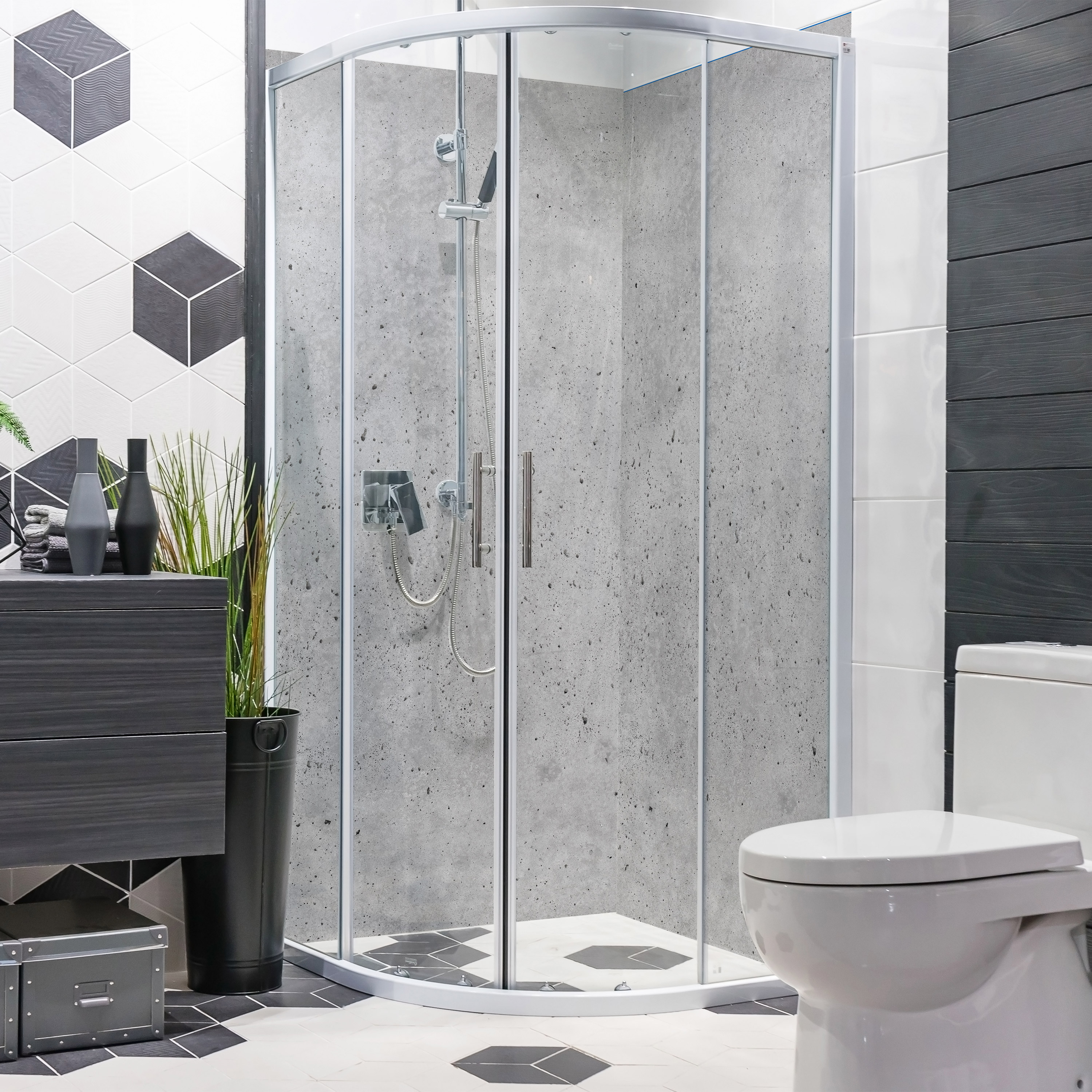 Duschrückwand mit Beton V7 Motiv, als Badrückwand zum Fliesenersatz