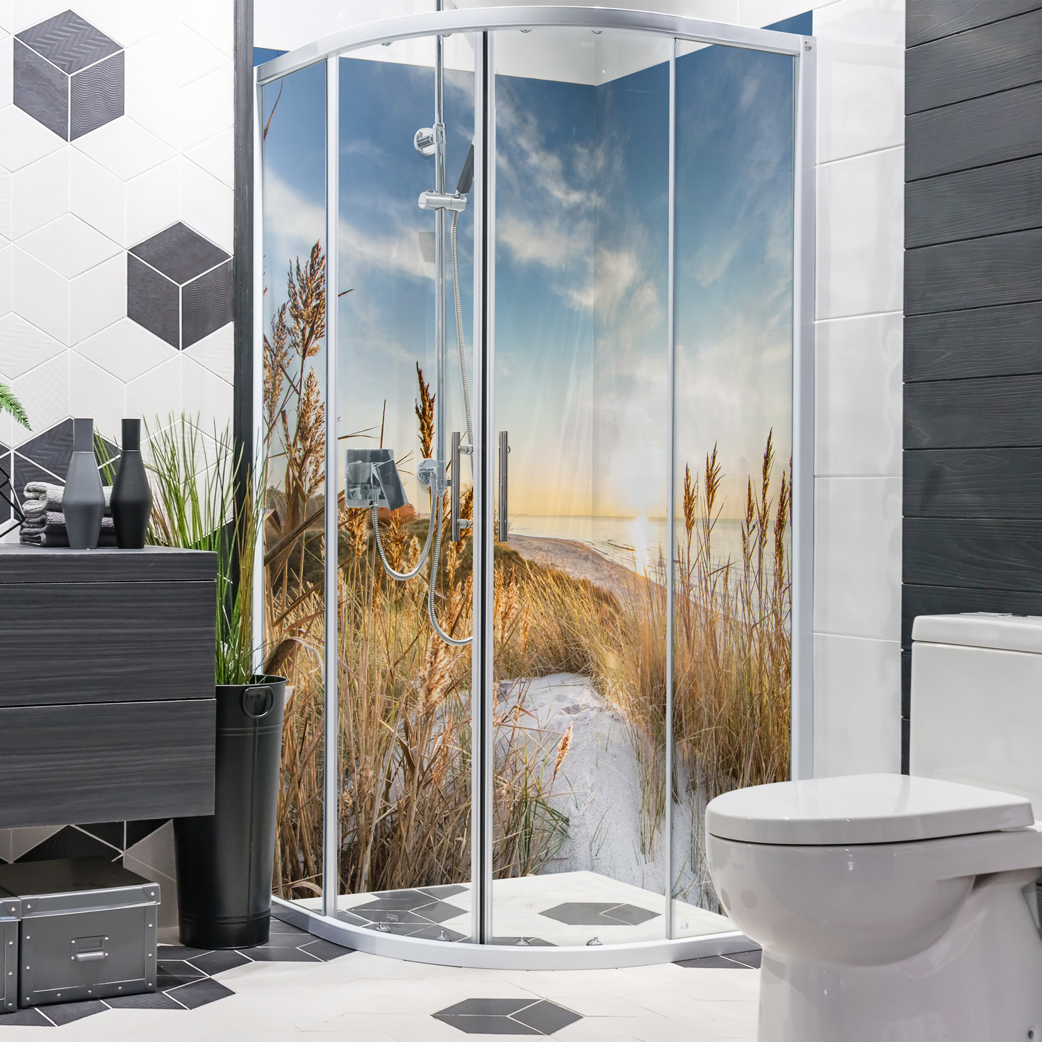 Duschrückwand mit Dünengras V3 Motiv, als Badrückwand zum Fliesenersatz