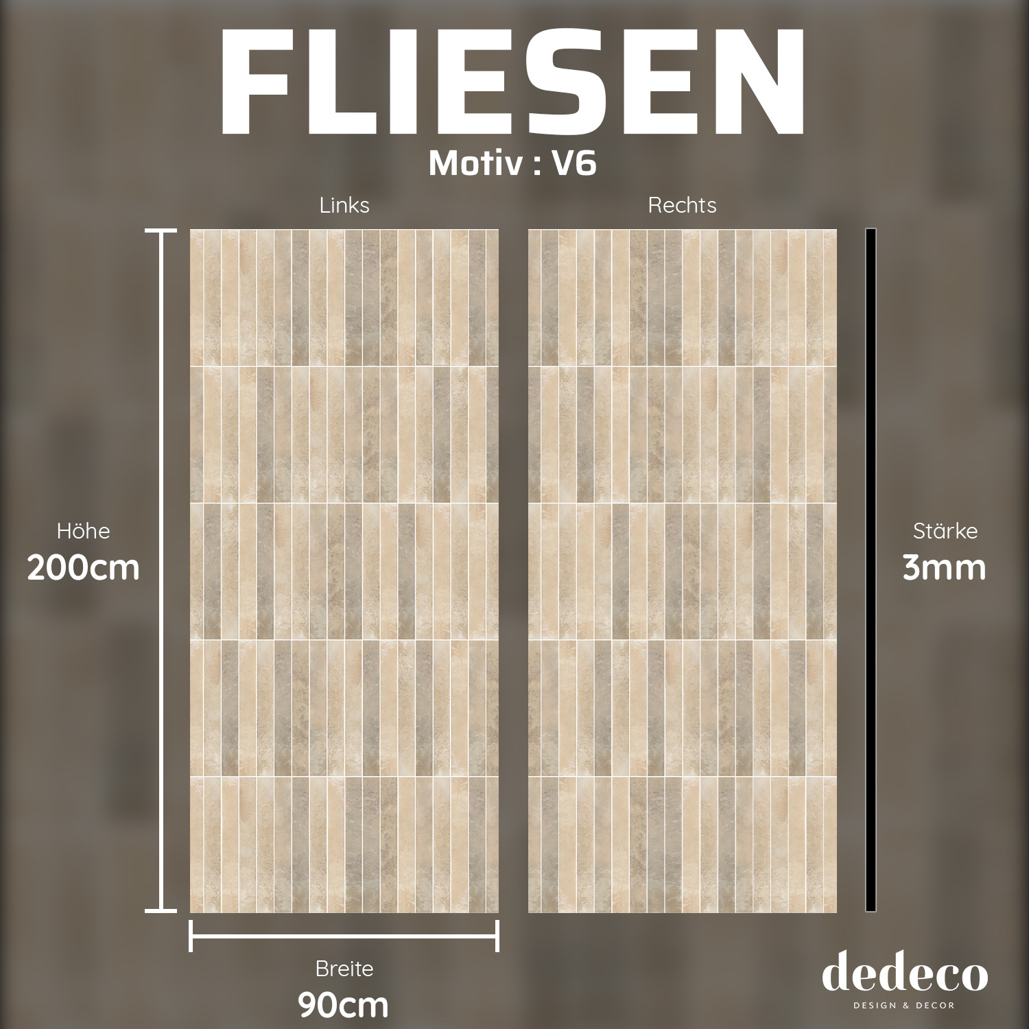 Duschrückwand mit Fliesen V6 Motiv, als Badrückwand zum Fliesenersatz