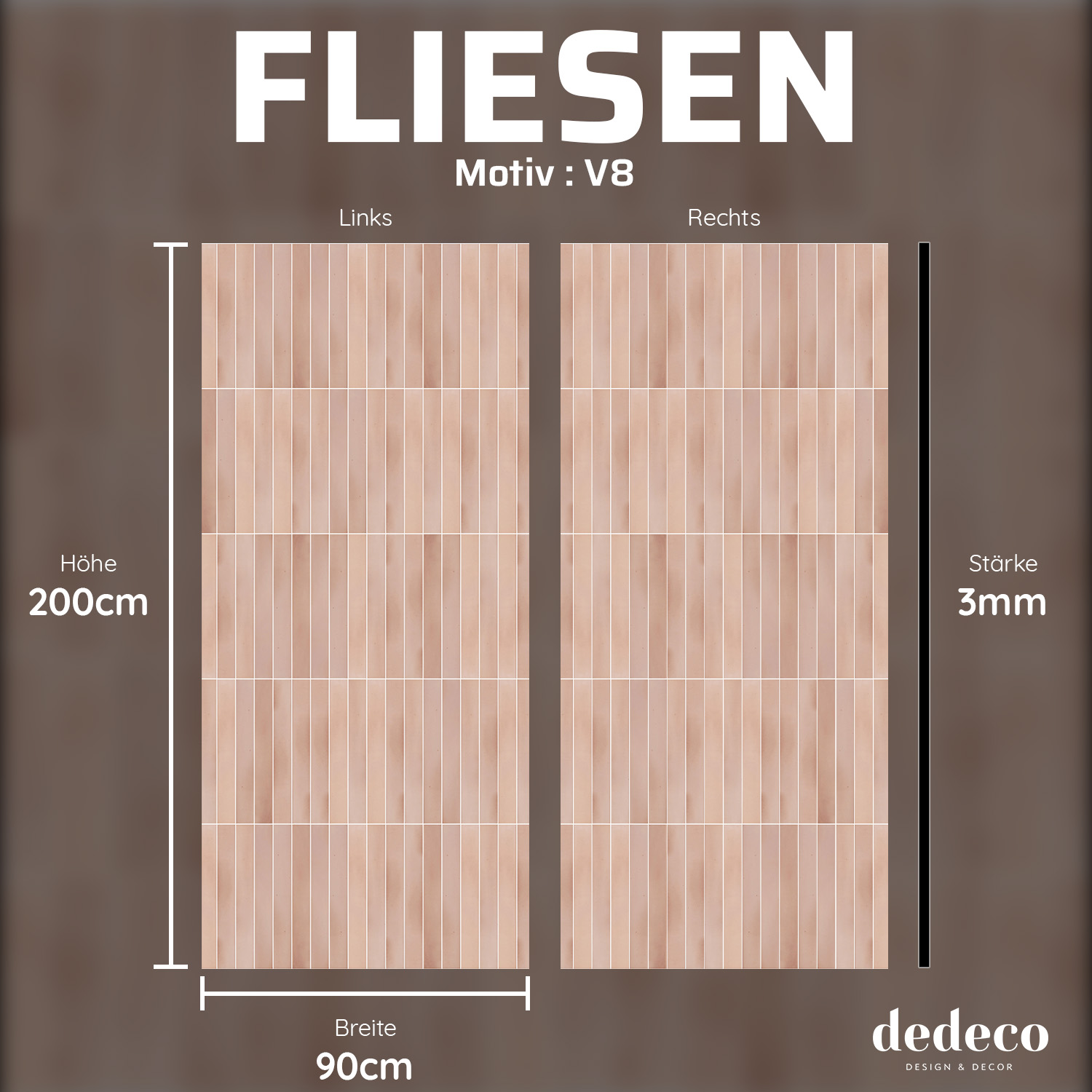 Duschrückwand mit Fliesen V8 Motiv, als Badrückwand zum Fliesenersatz