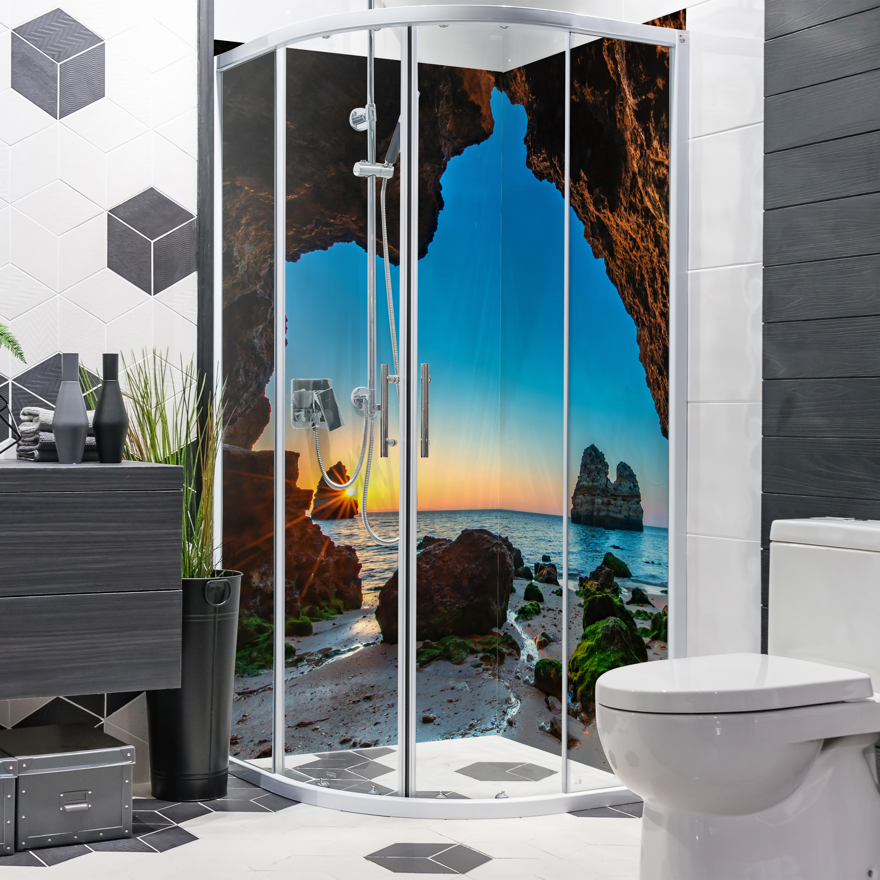 Duschrückwand mit Höhle V1 Motiv, als Badrückwand zum Fliesenersatz