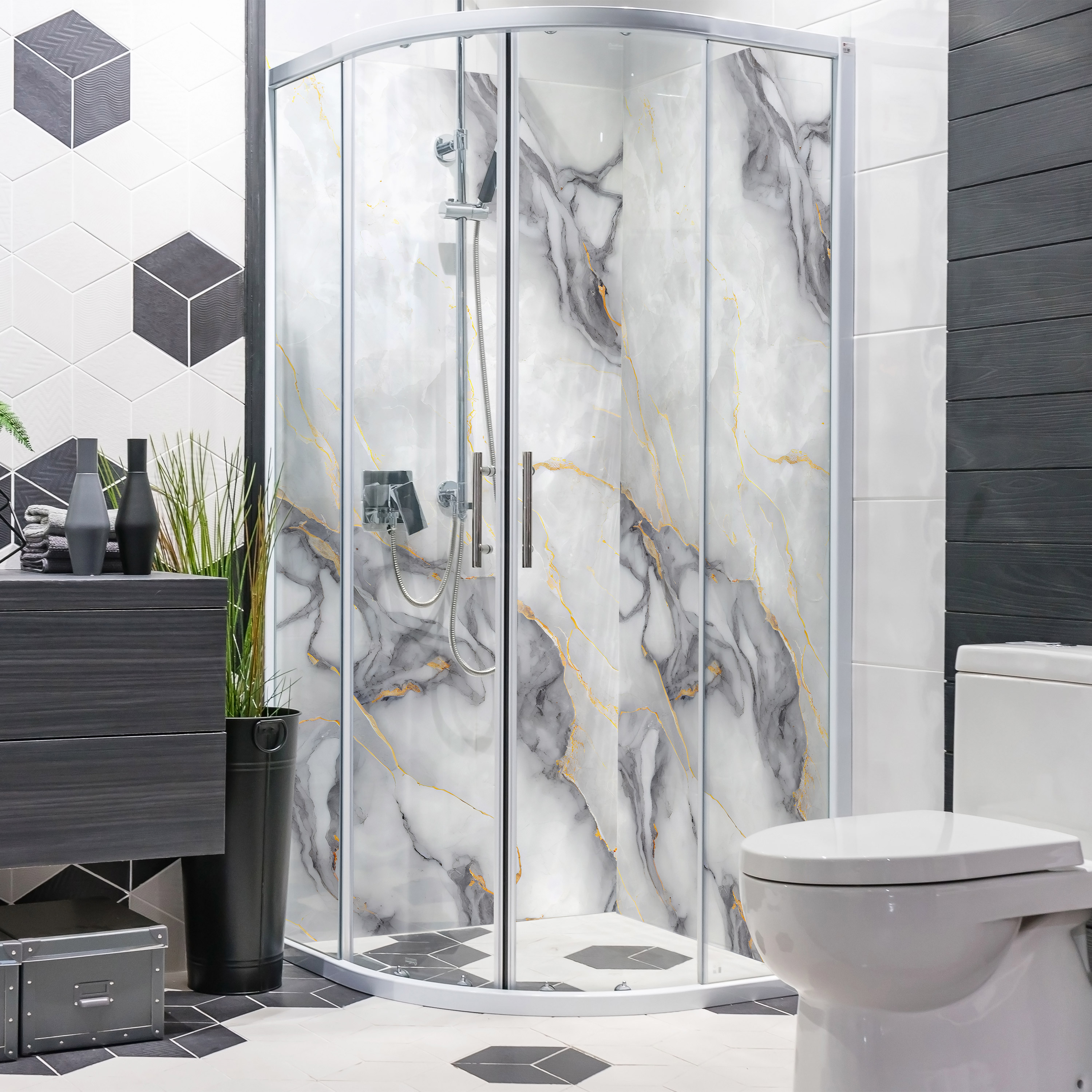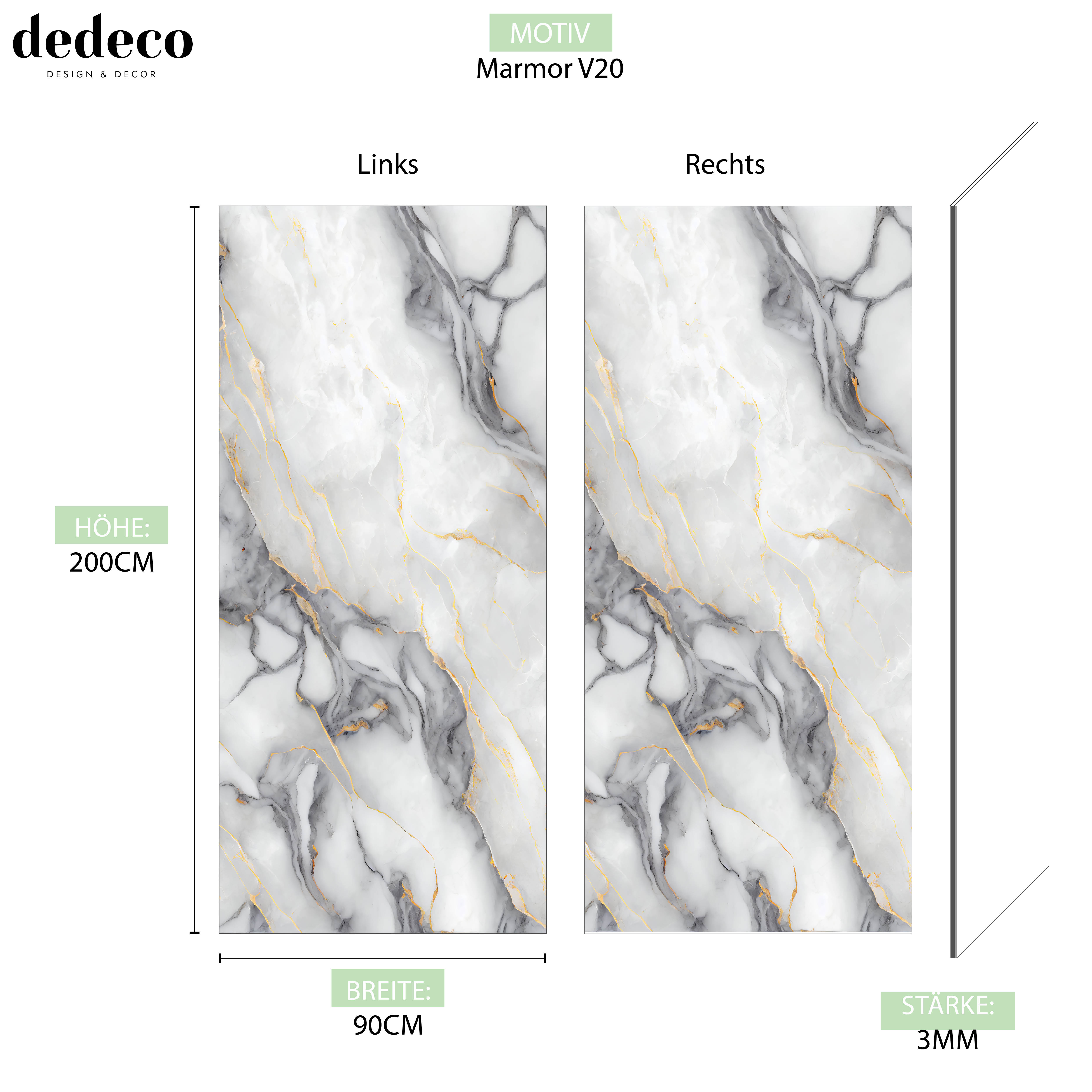 Duschrückwand mit Marmor V20 Motiv, als Badrückwand zum Fliesenersatz