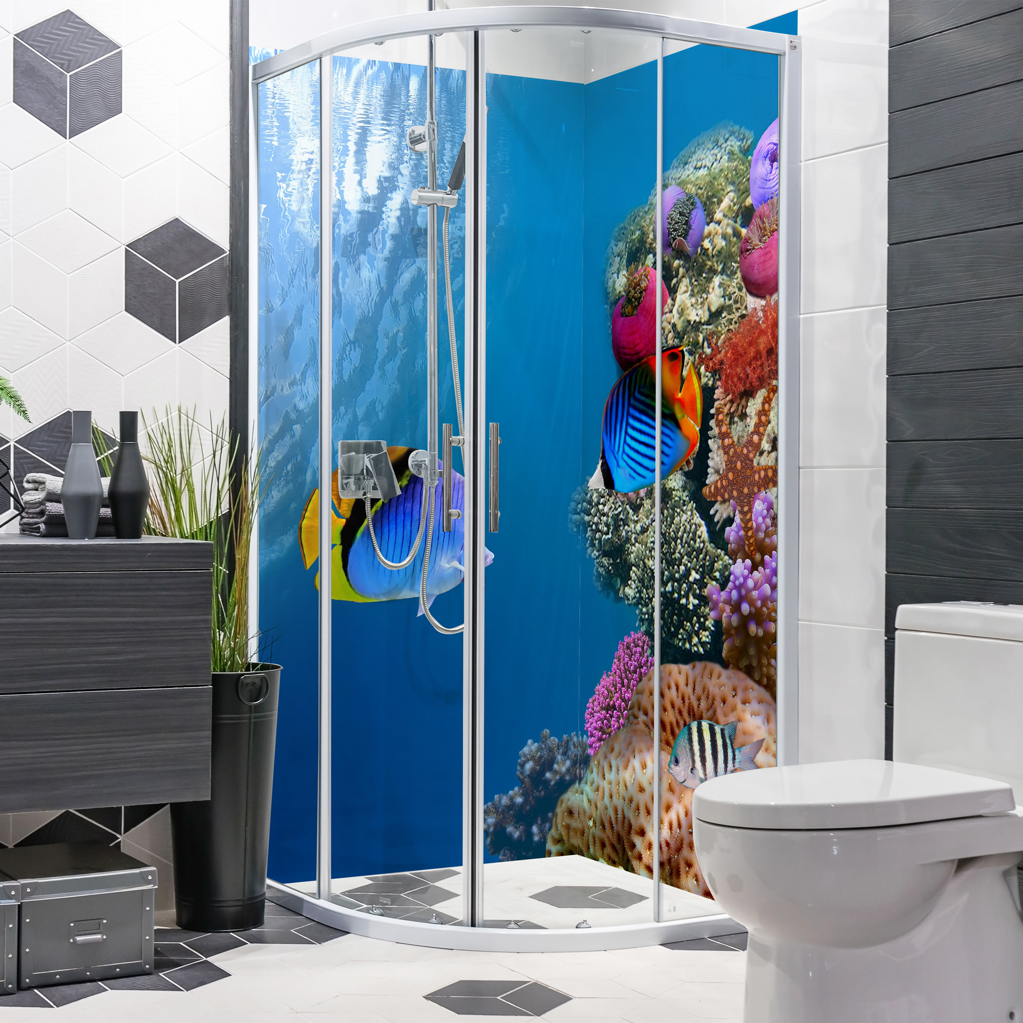Duschrückwand mit Ozean V8 Motiv, als Badrückwand zum Fliesenersatz