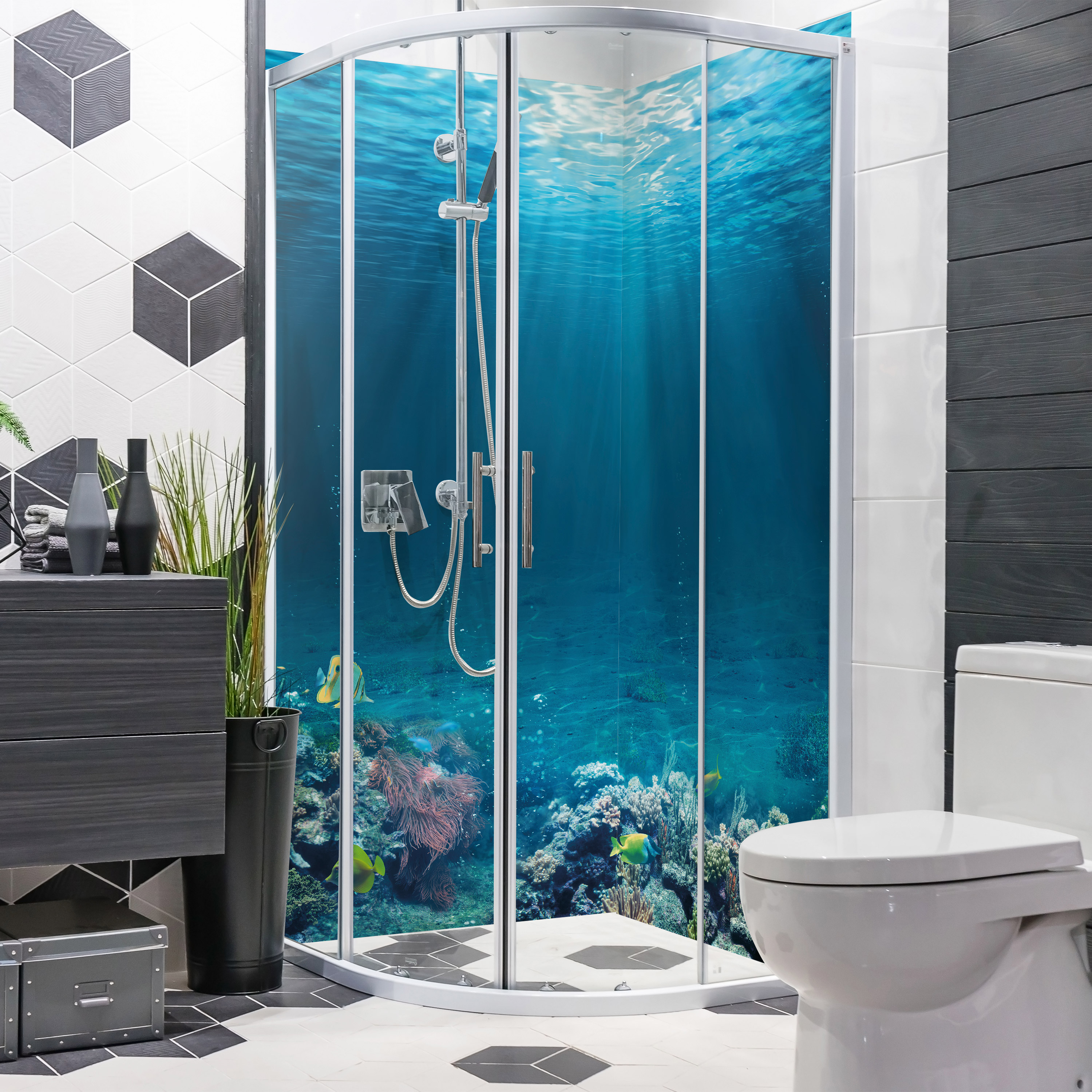 Duschrückwand mit Ozean V9 Motiv, als Badrückwand zum Fliesenersatz