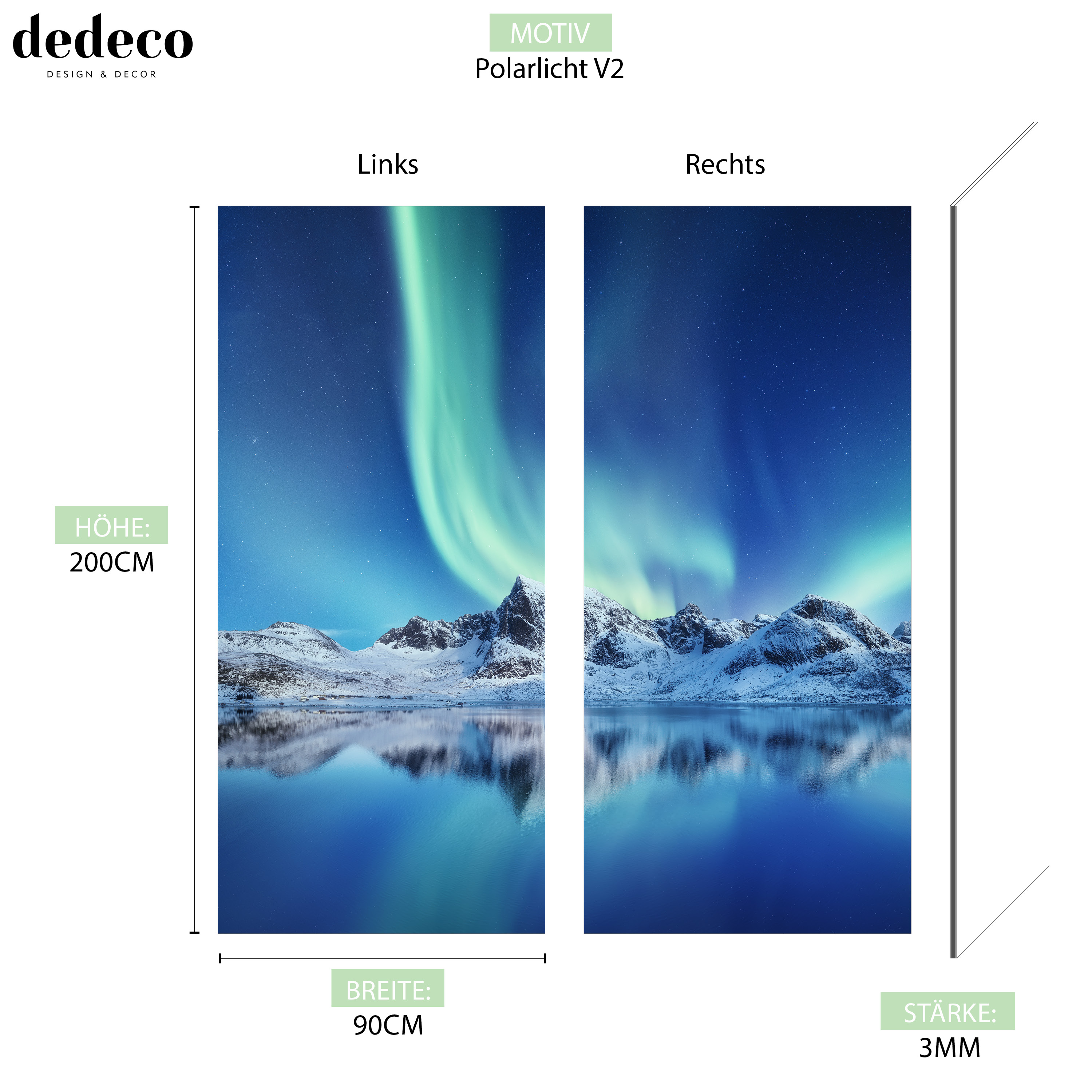 Duschrückwand mit Polarlicht V2 Motiv, als Badrückwand zum Fliesenersatz