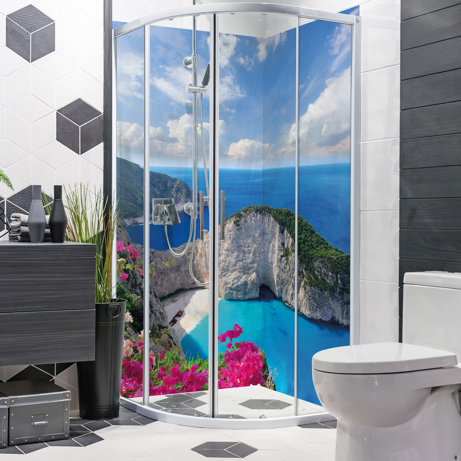 Duschrückwand mit Strand V10 Motiv, als Badrückwand zum Fliesenersatz