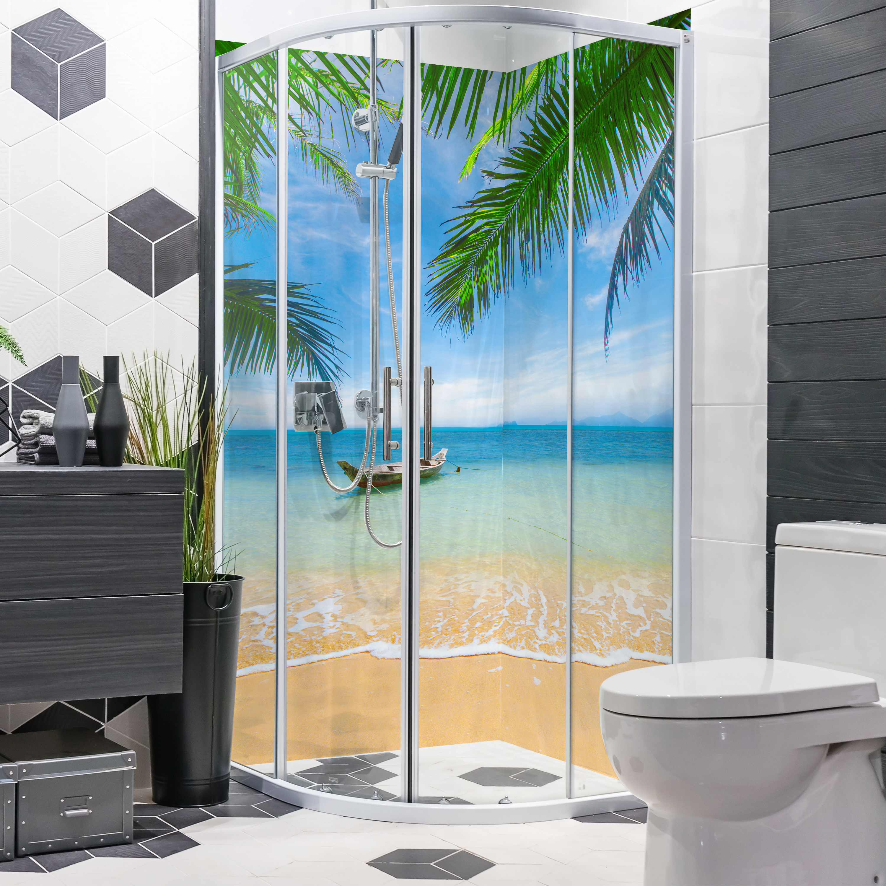 Duschrückwand mit Strand V2 Motiv, als Badrückwand zum Fliesenersatz