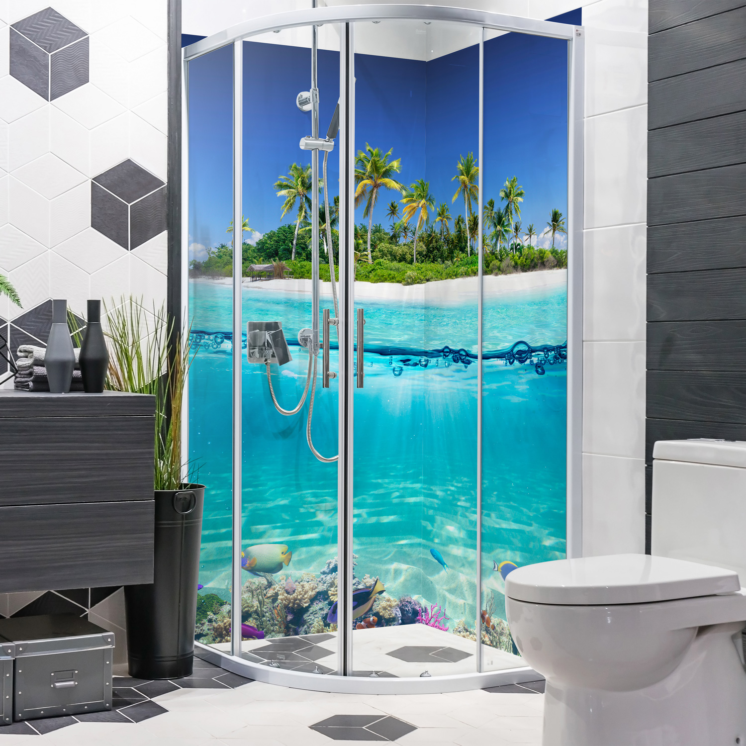 Duschrückwand mit Strand V6 Motiv, als Badrückwand zum Fliesenersatz