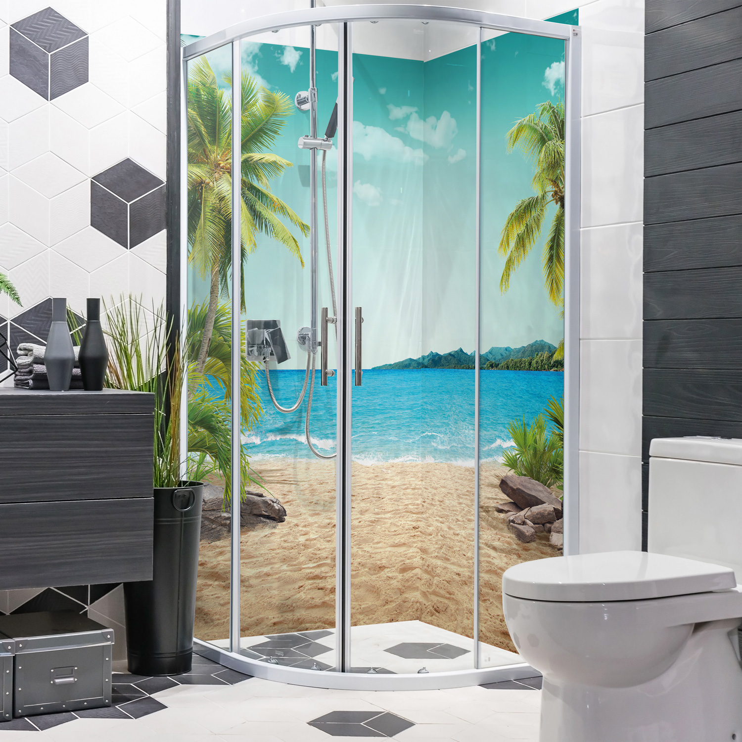 Duschrückwand mit Strand V8 Motiv, als Badrückwand zum Fliesenersatz