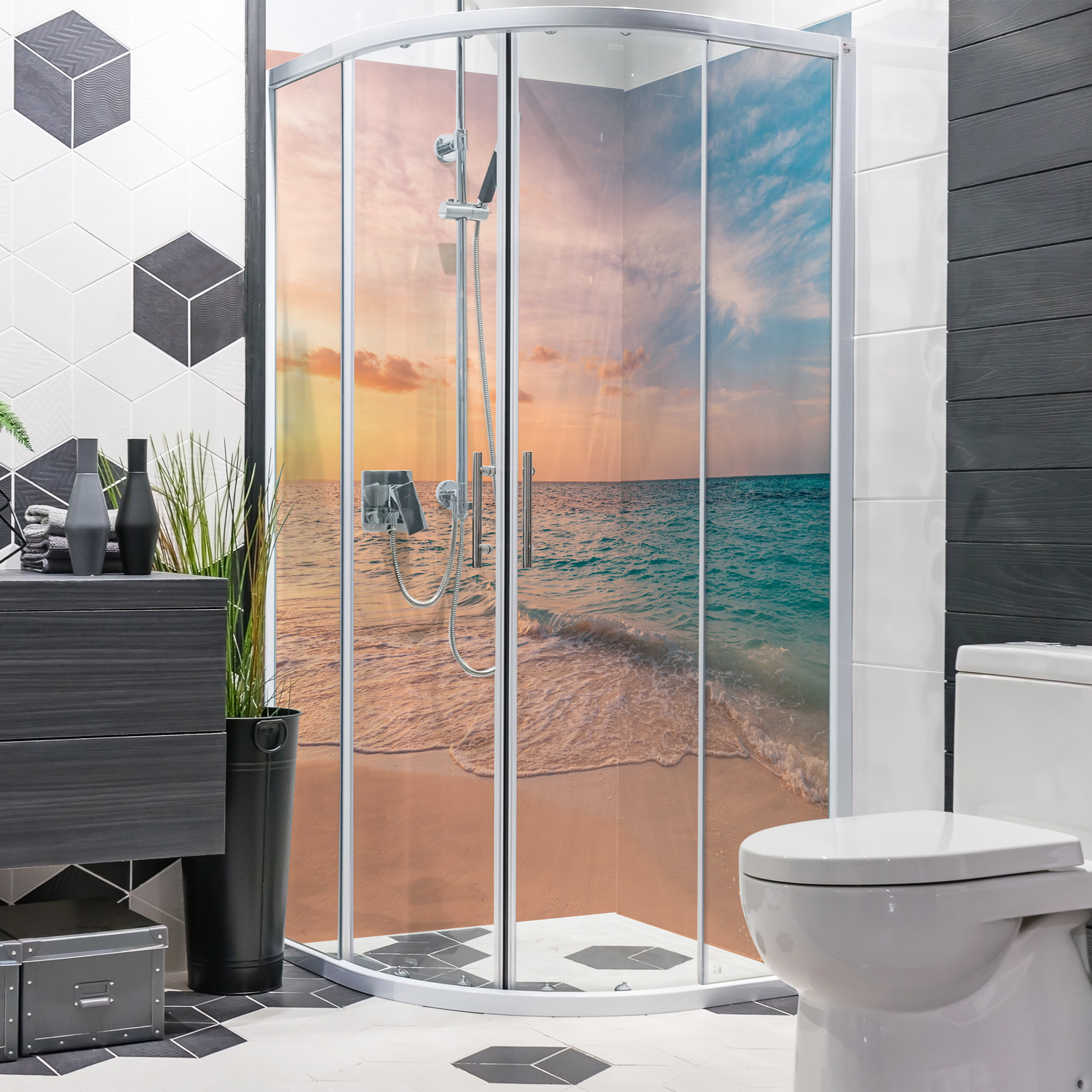 Duschrückwand mit Strand V9 Motiv, als Badrückwand zum Fliesenersatz