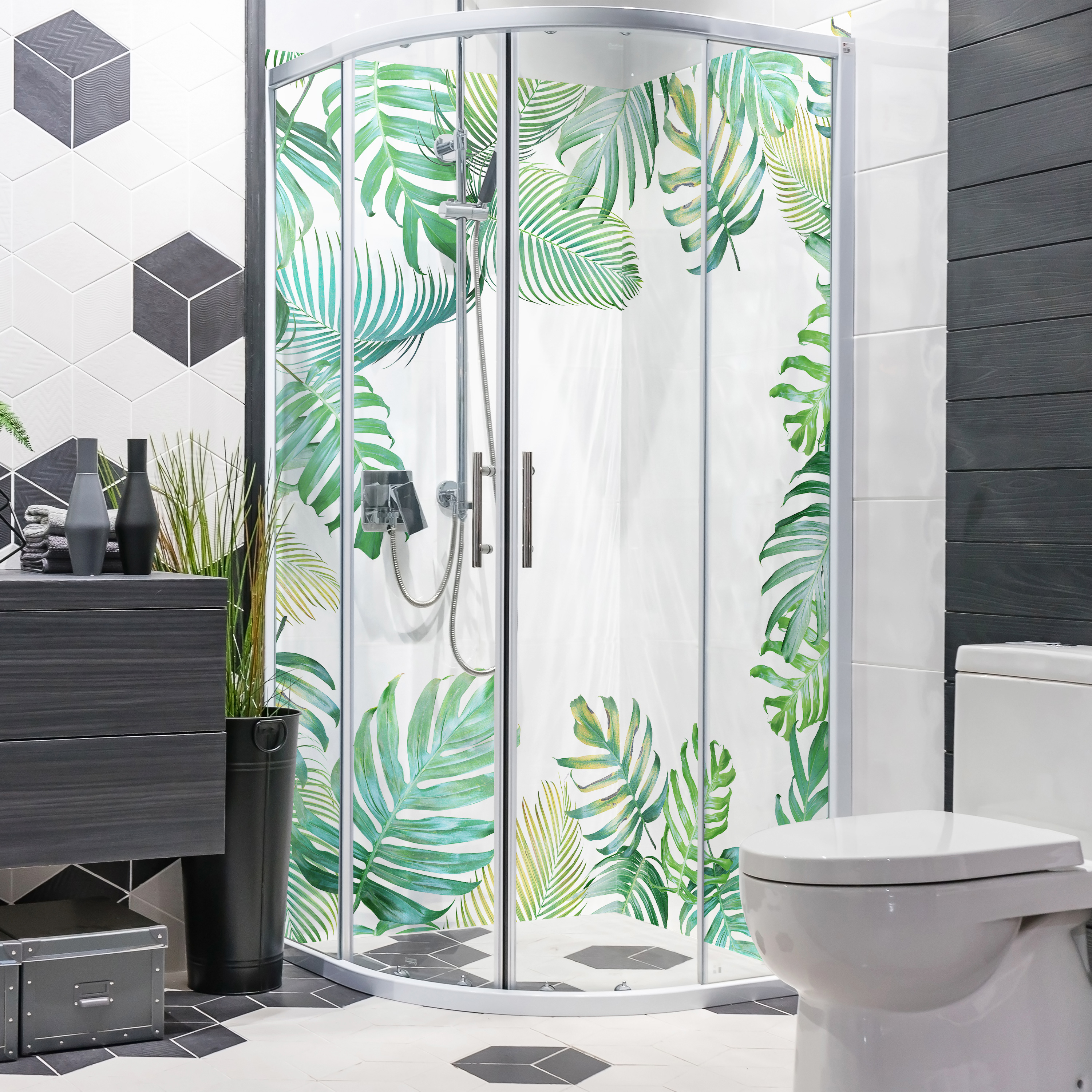 Duschrückwand mit Tropical V1 Motiv, als Badrückwand zum Fliesenersatz