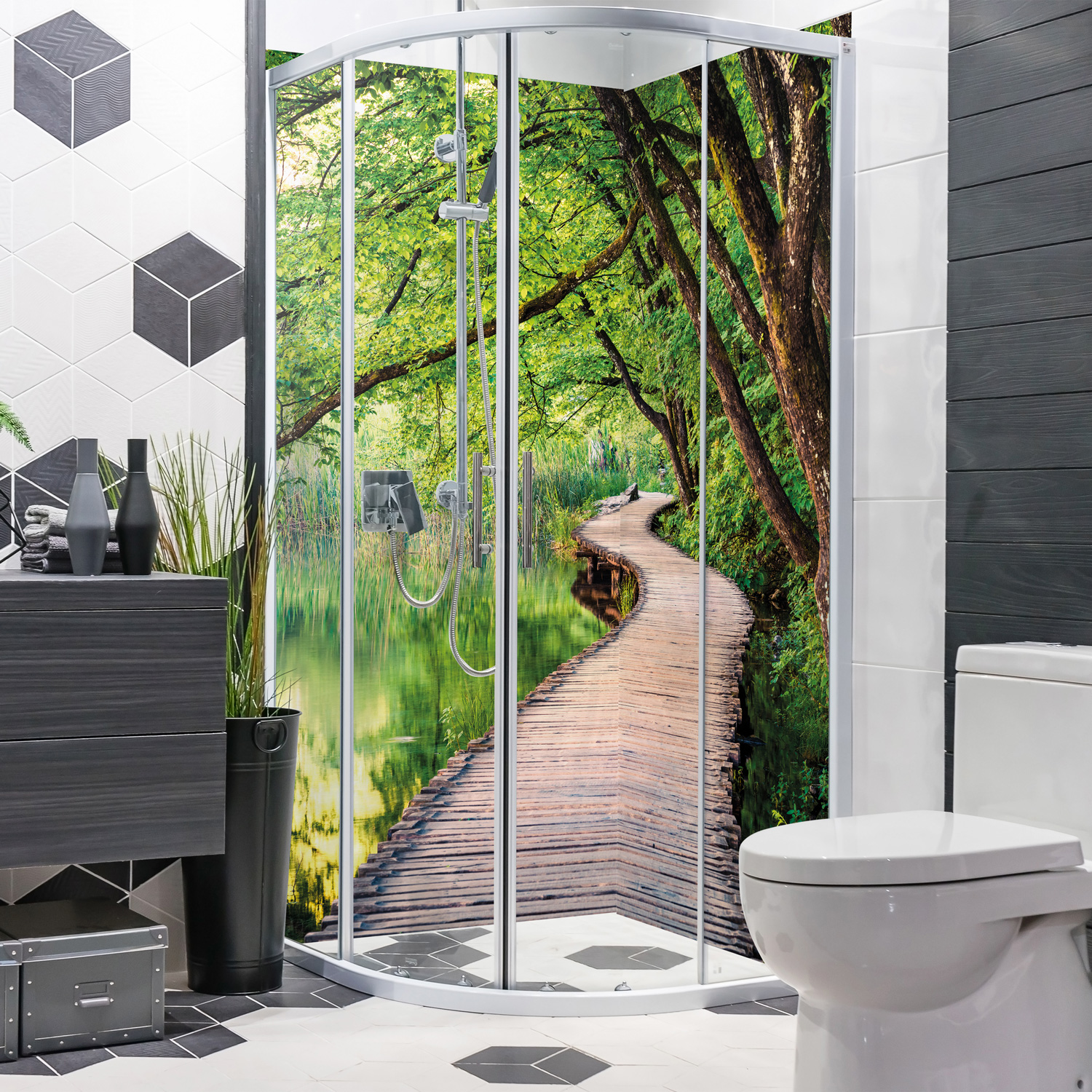 Duschrückwand mit Wald V4 Motiv, als Badrückwand zum Fliesenersatz