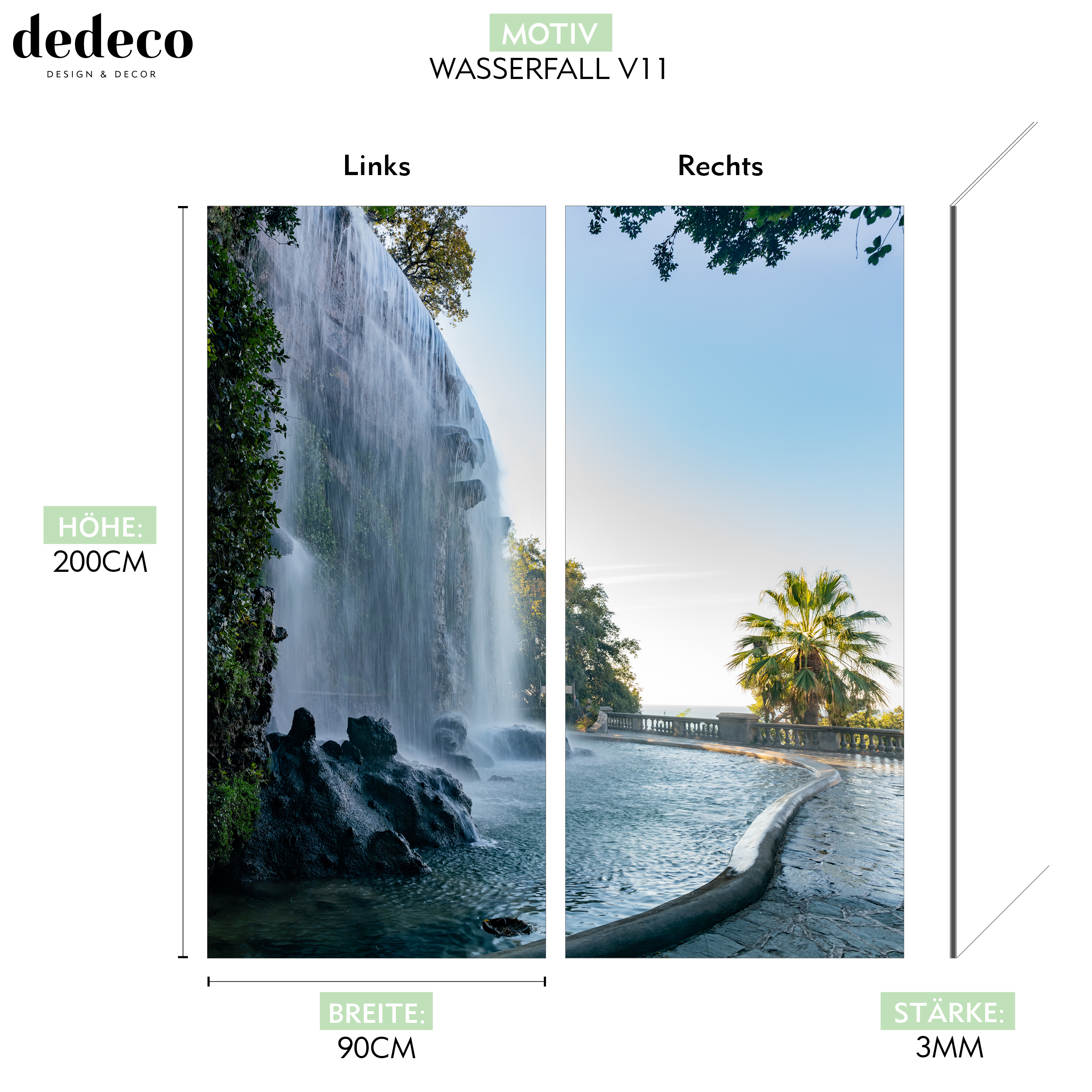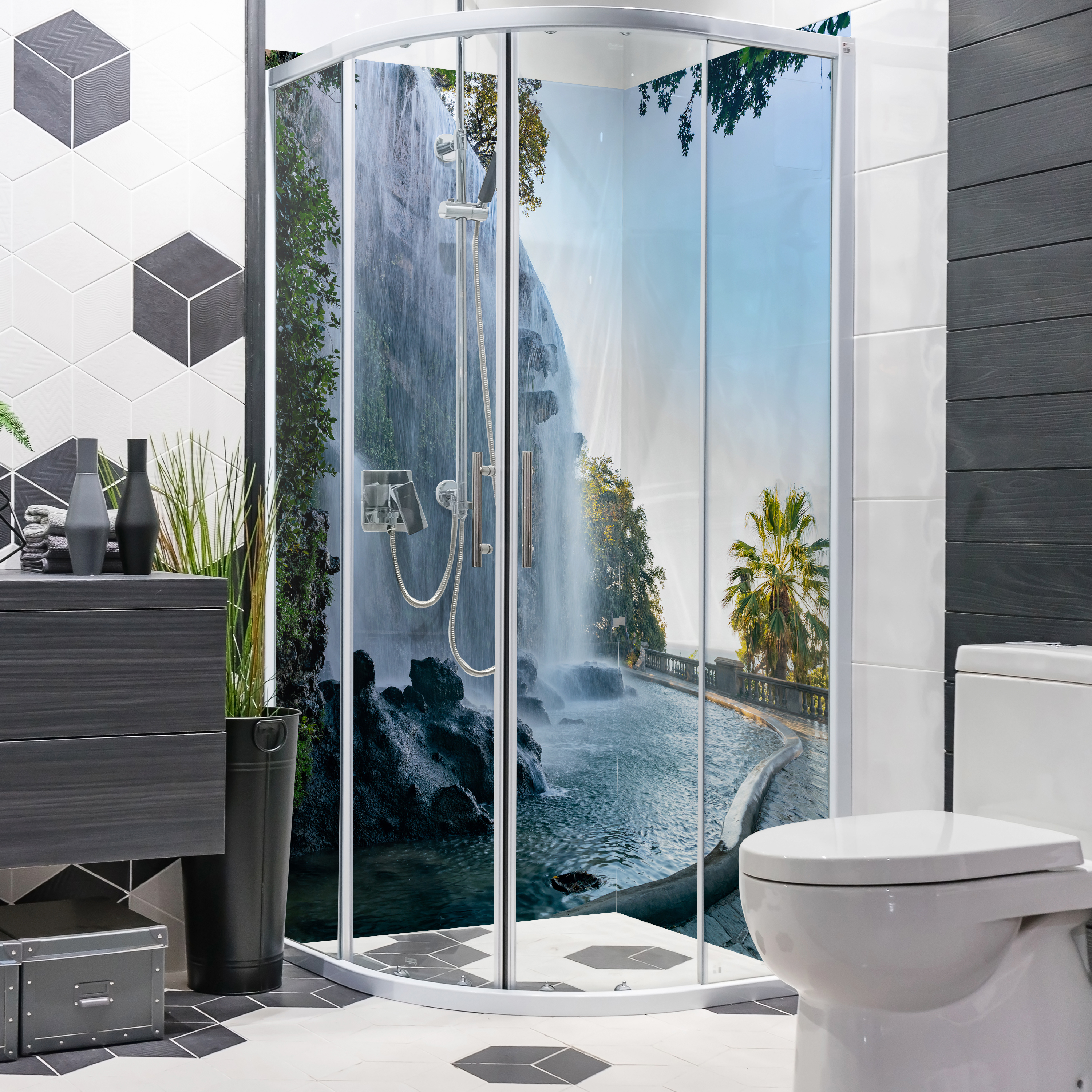 Duschrückwand mit Wasserfall V11 Motiv, als Badrückwand zum Fliesenersatz