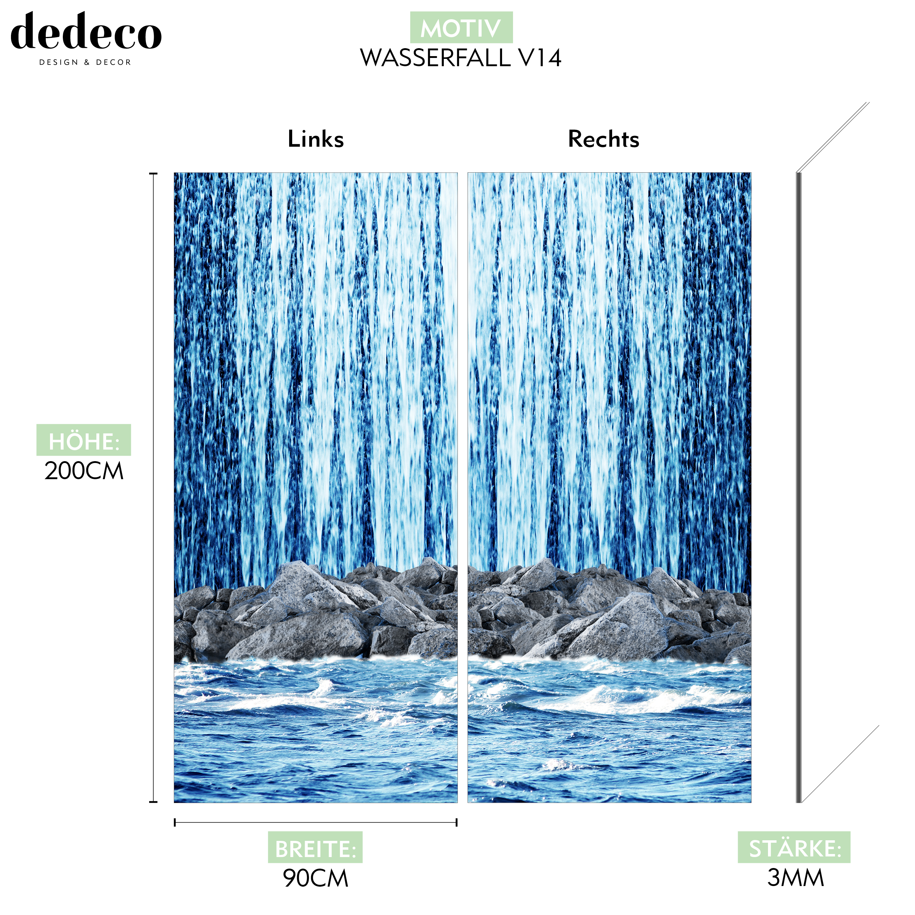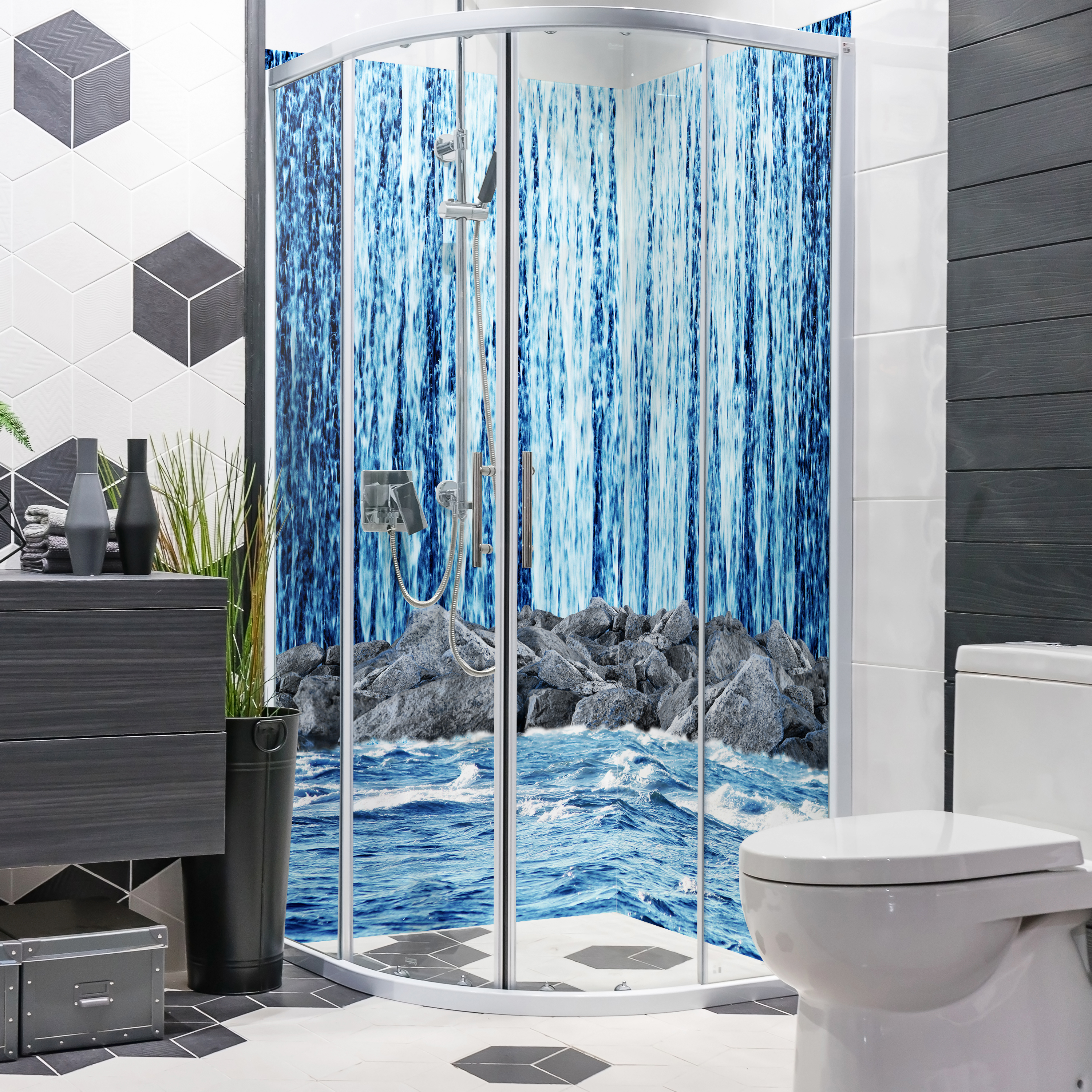 Duschrückwand mit Wasserfall V14 Motiv, als Badrückwand zum Fliesenersatz