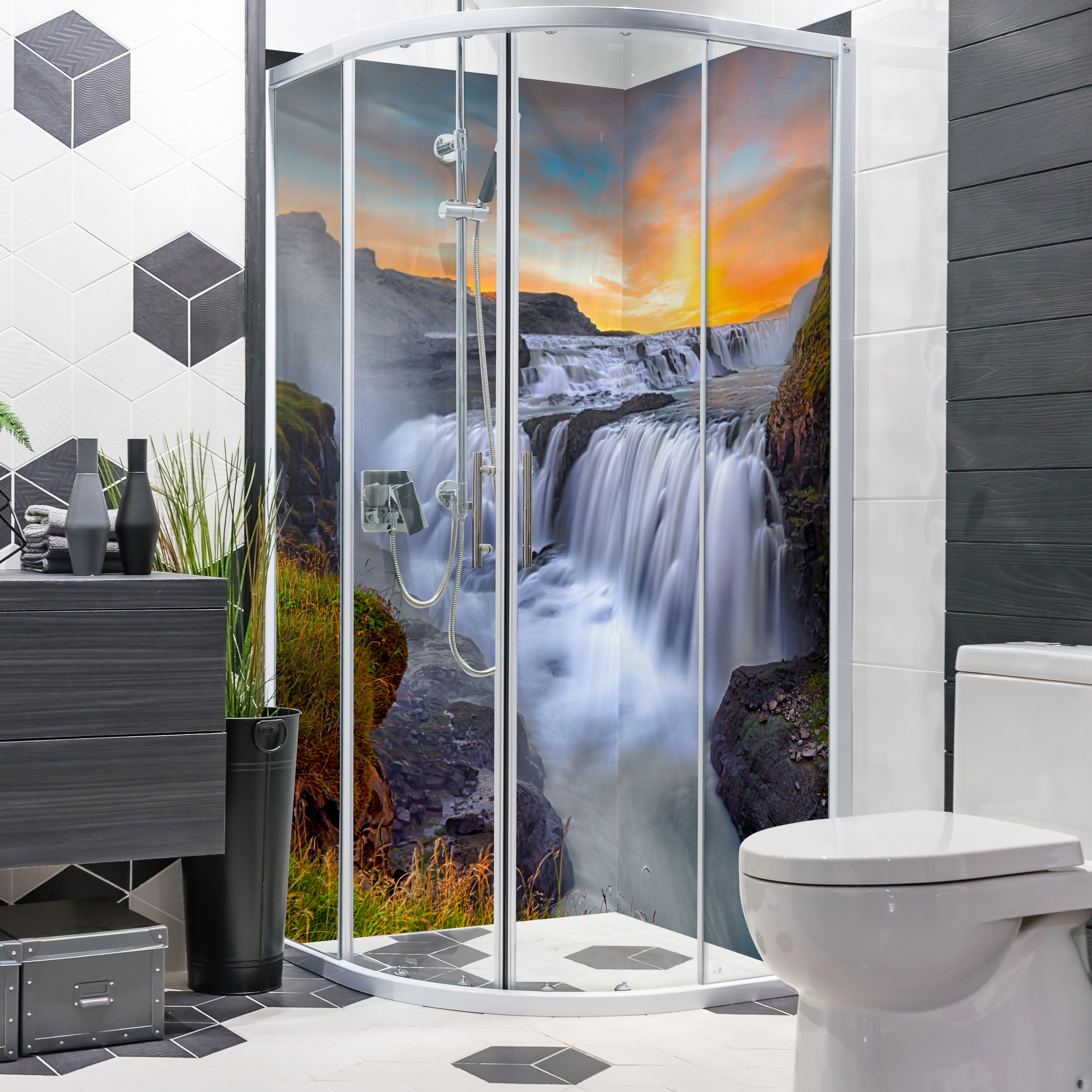 Duschrückwand mit Wasserfall V2 Motiv, als Badrückwand zum Fliesenersatz
