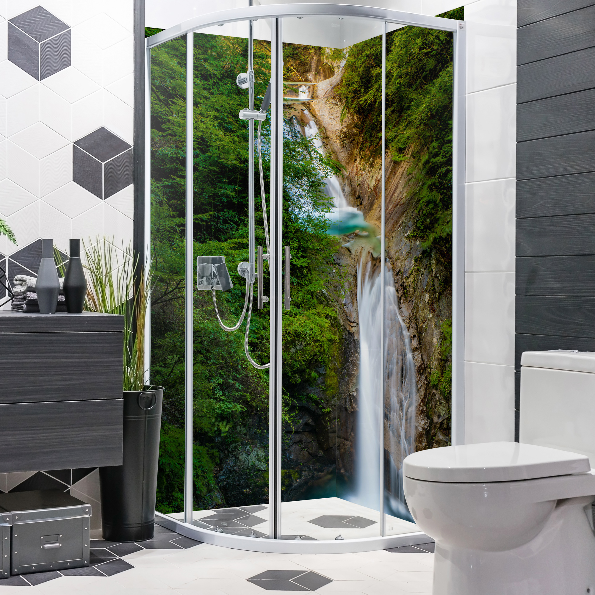 Duschrückwand mit Wasserfall V20 Motiv, als Badrückwand zum Fliesenersatz