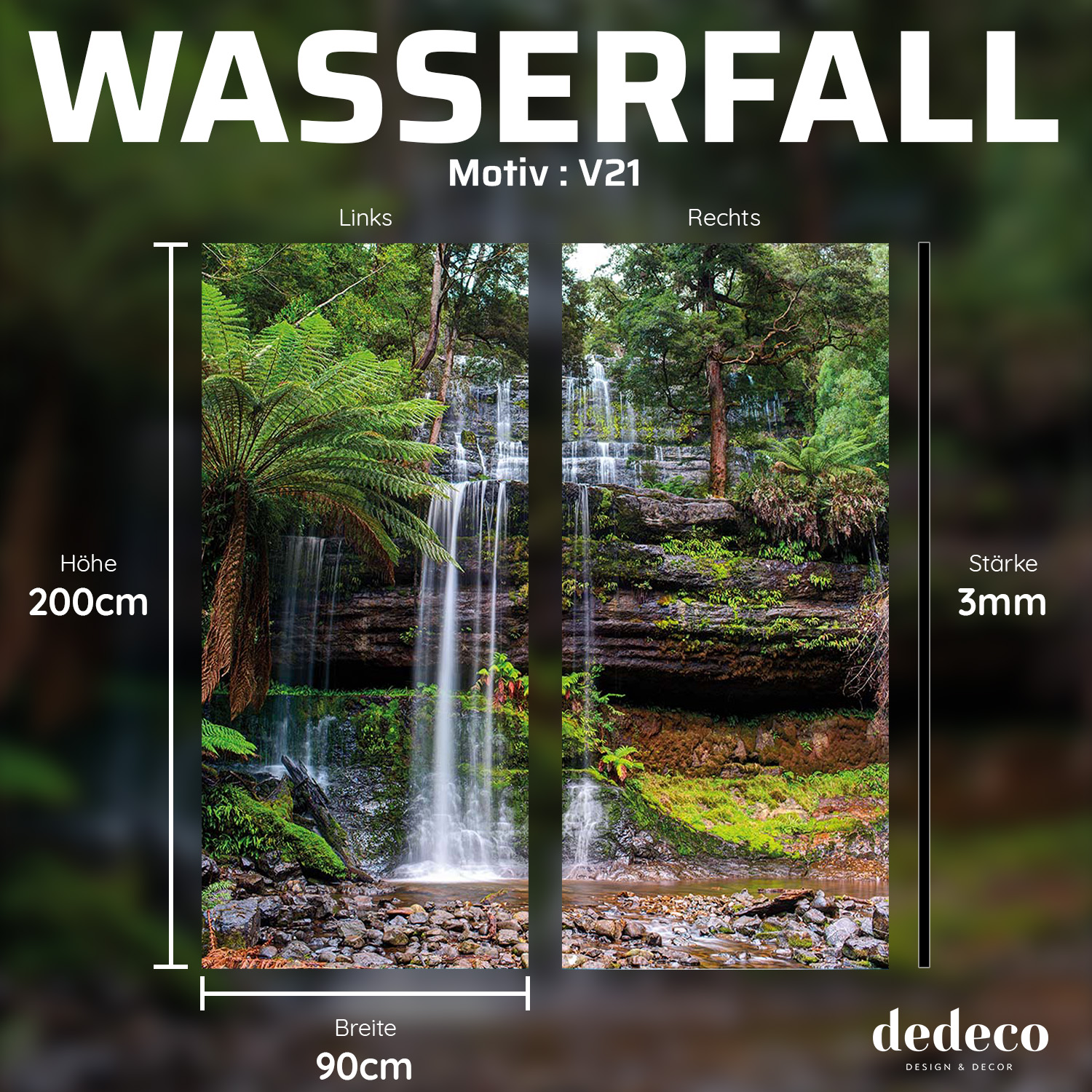 Duschrückwand mit Wasserfall V21 Motiv, als Badrückwand zum Fliesenersatz