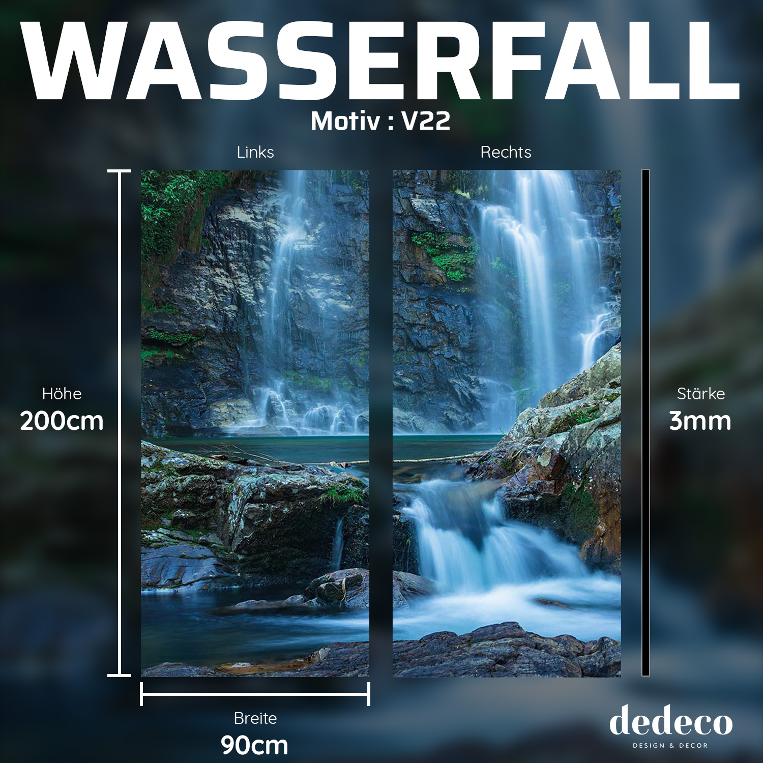 Duschrückwand mit Wasserfall V22 Motiv, als Badrückwand zum Fliesenersatz