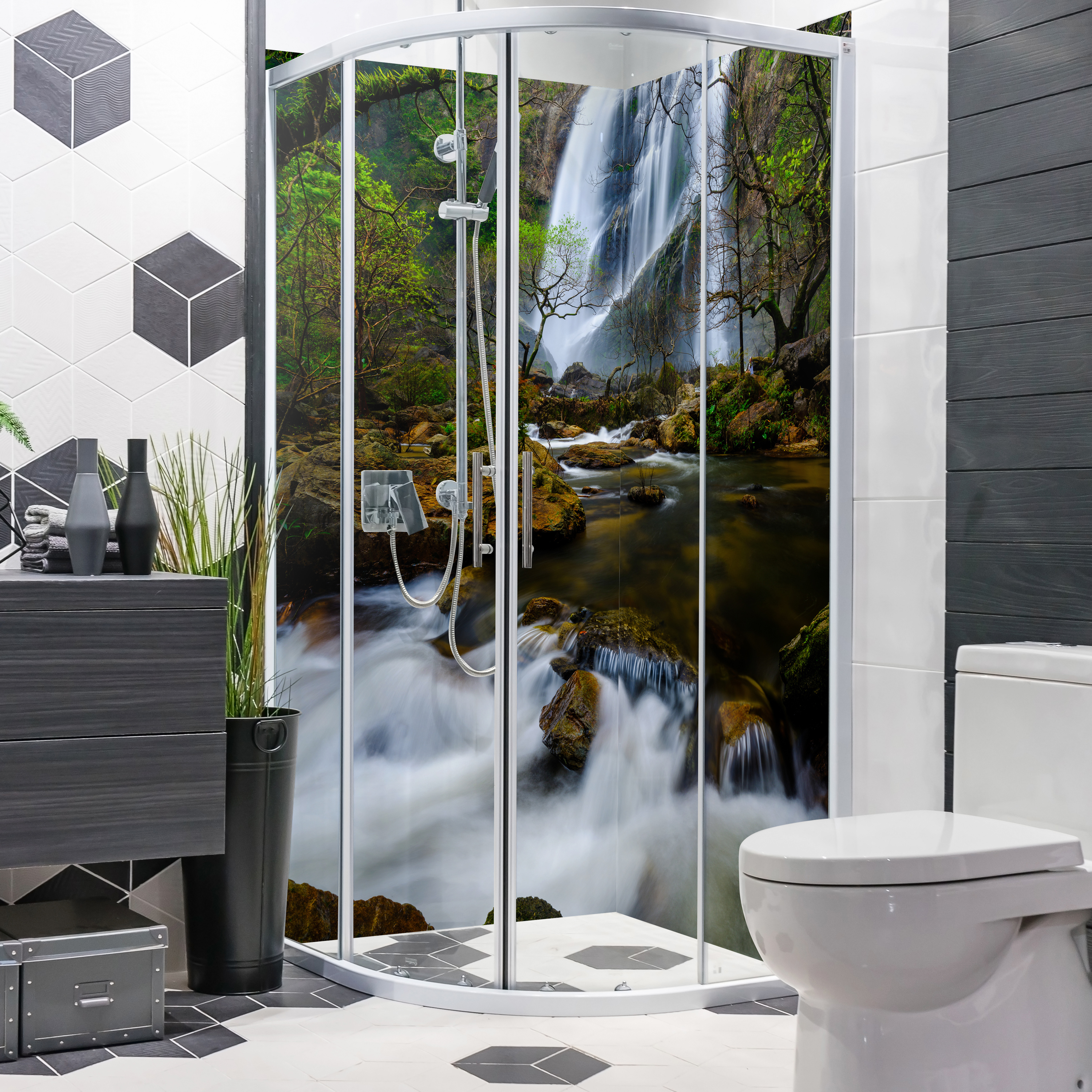 Duschrückwand mit Wasserfall V3 Motiv, als Badrückwand zum Fliesenersatz