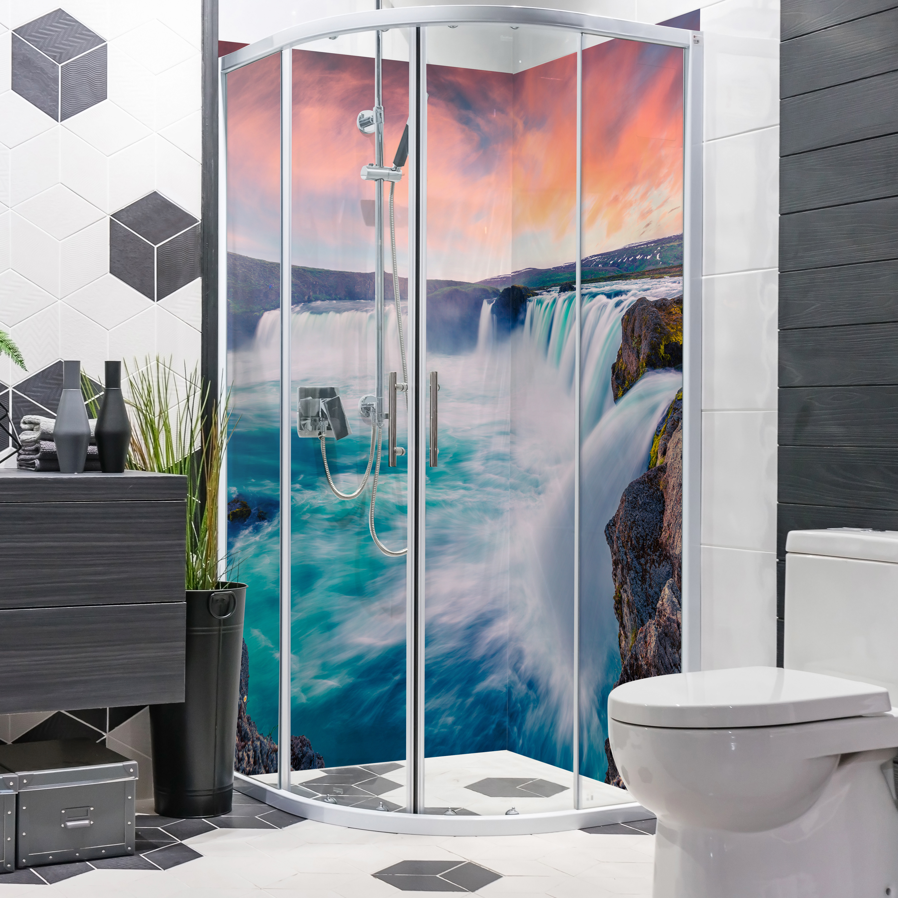 Duschrückwand mit Wasserfall V4 Motiv, als Badrückwand zum Fliesenersatz
