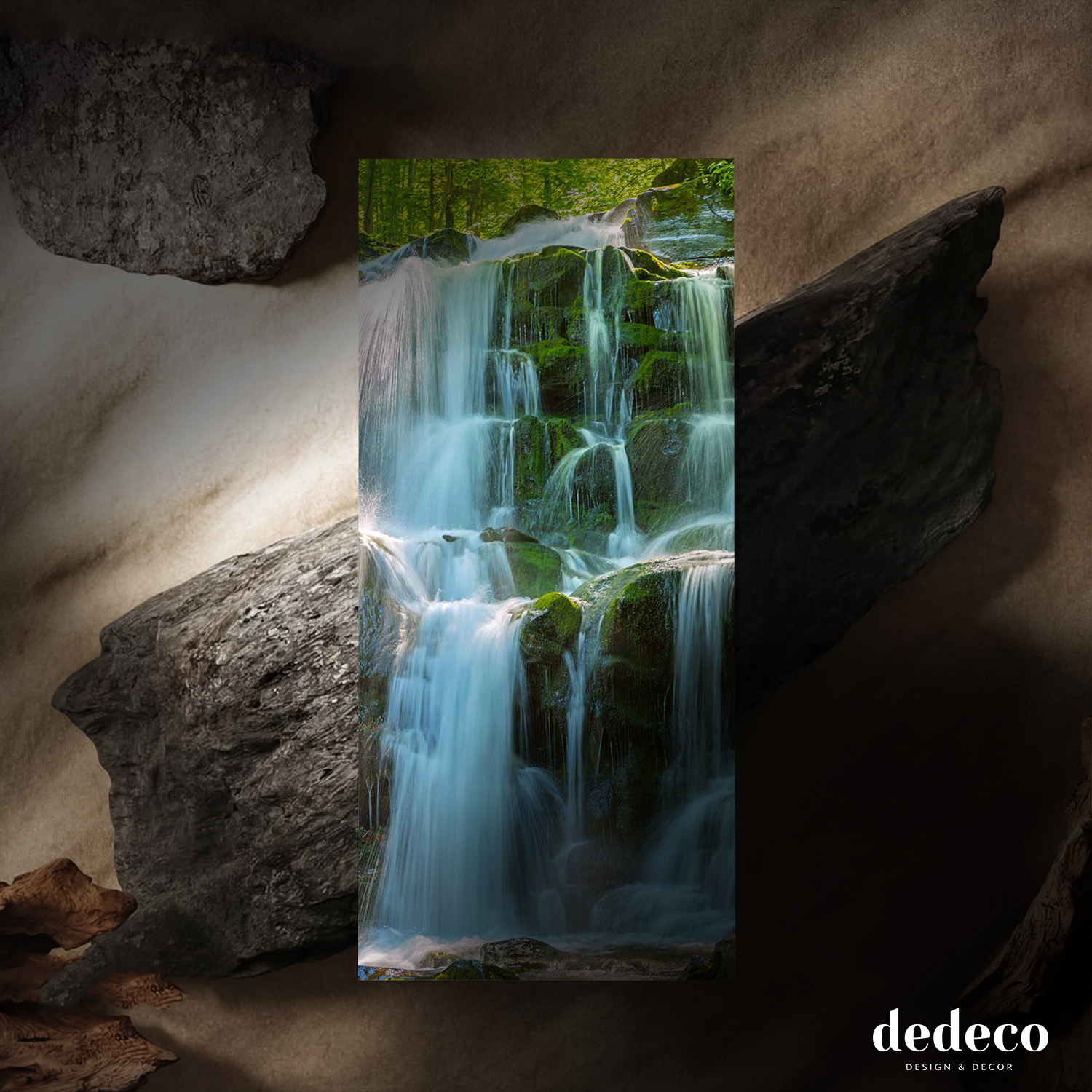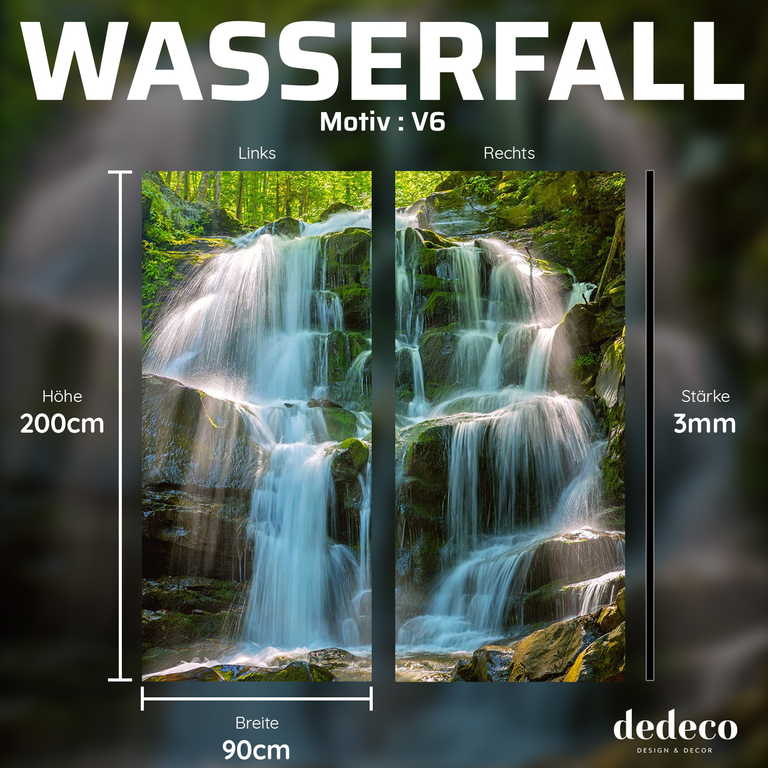 Duschrückwand mit Wasserfall V6 Motiv, als Badrückwand zum Fliesenersatz