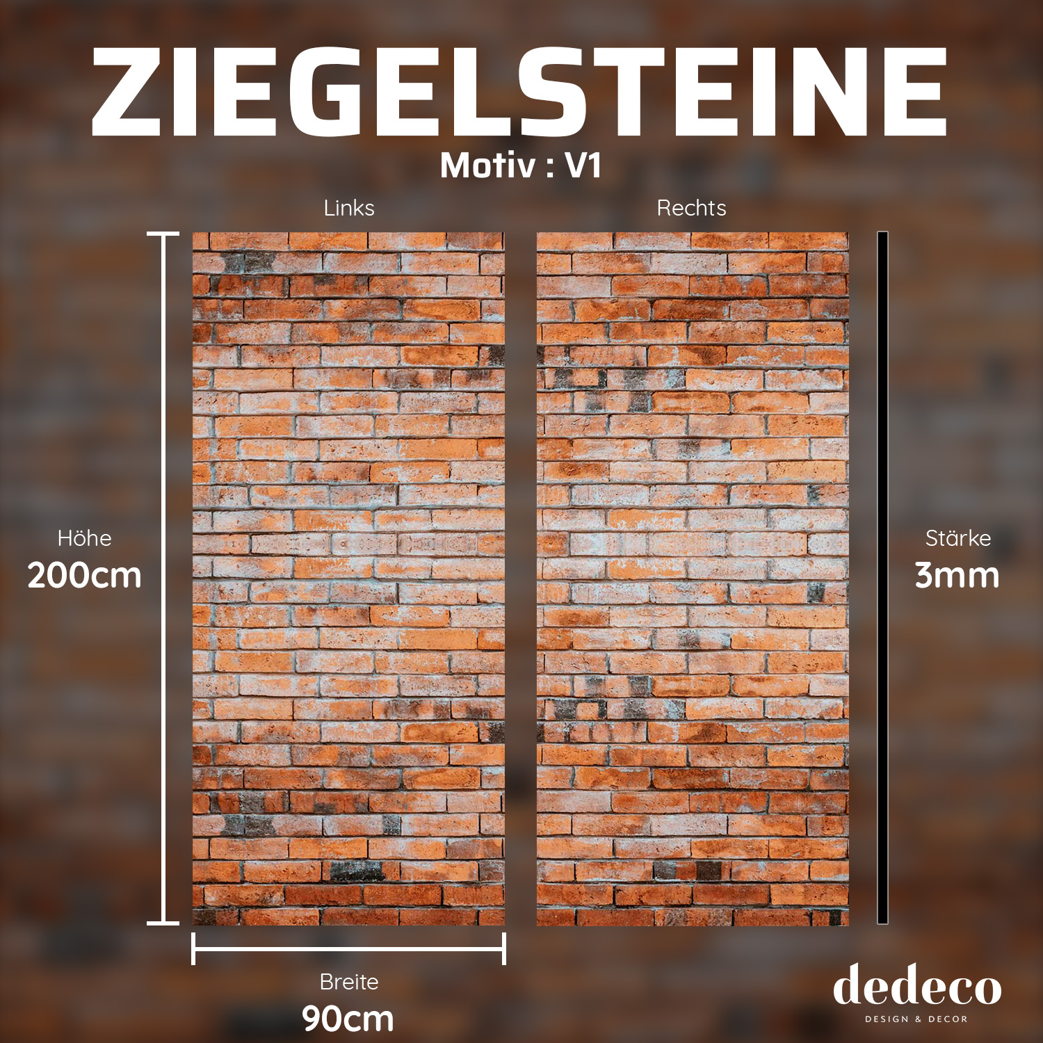 Duschrückwand mit Ziegelsteine V1 Motiv, als Badrückwand zum Fliesenersatz