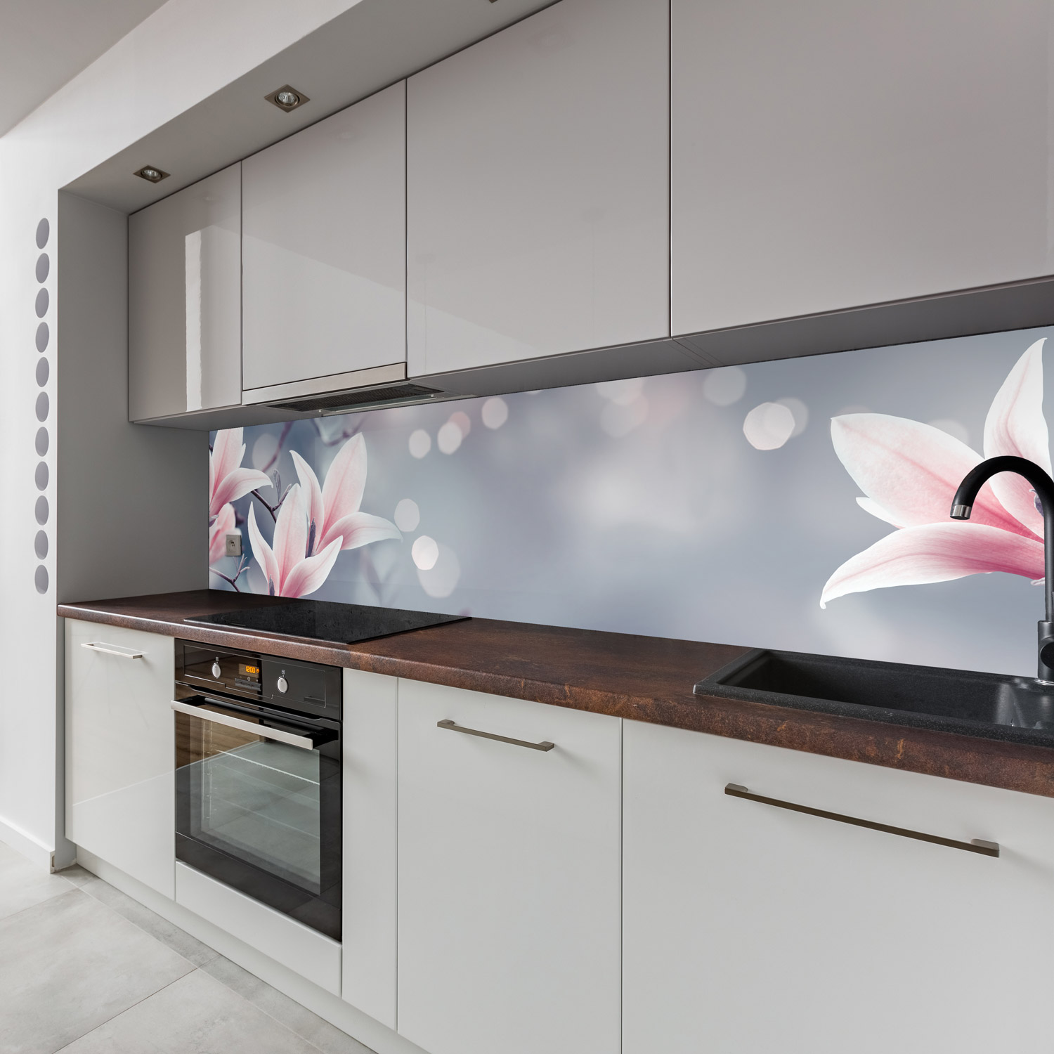 Küchenrückwand mit Blumen V4 Motiv als Fliesenersatz und Spritzschutz