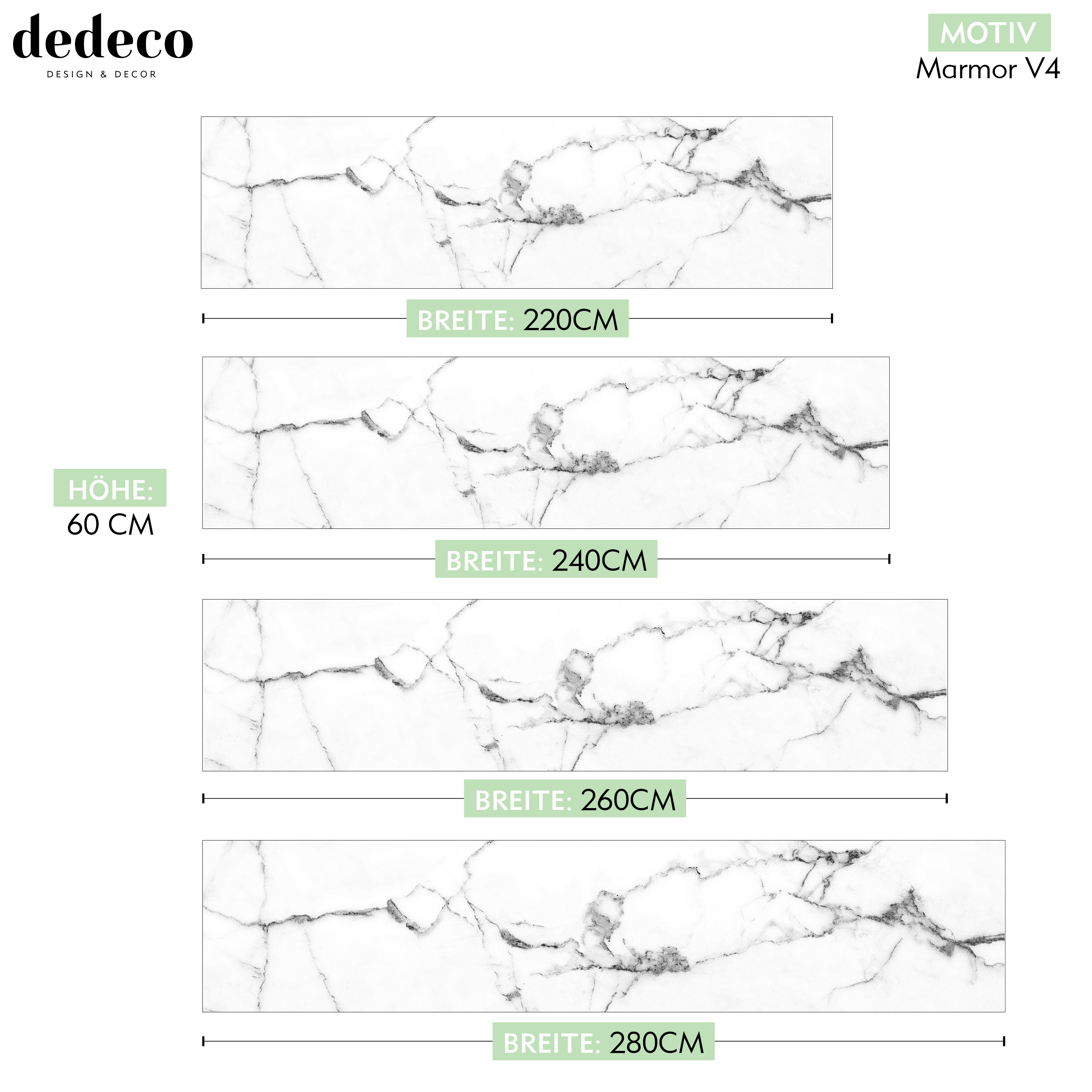 - Alles aus einer Hand: Das passende dedeco Montageset findest du ebenfalls in unserem Shop. Auf Anfrage bzw. mithilfe unseres Konfigurators kannst du deine perfekte Küchenrückwand (ggf. mit Steckdosen-Aussparungen) auf Maß bestellen.