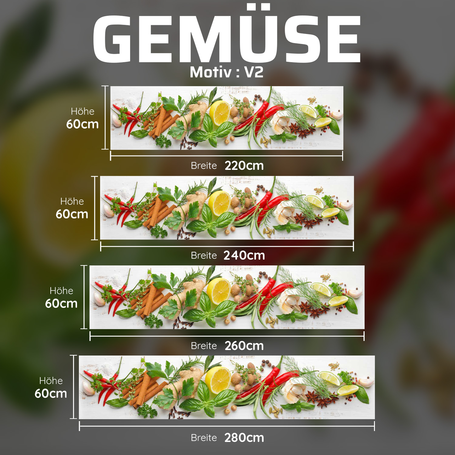 Küchenrückwand mit Obst & Gemüse V2 Motiv als Fliesenersatz und Spritzschutz