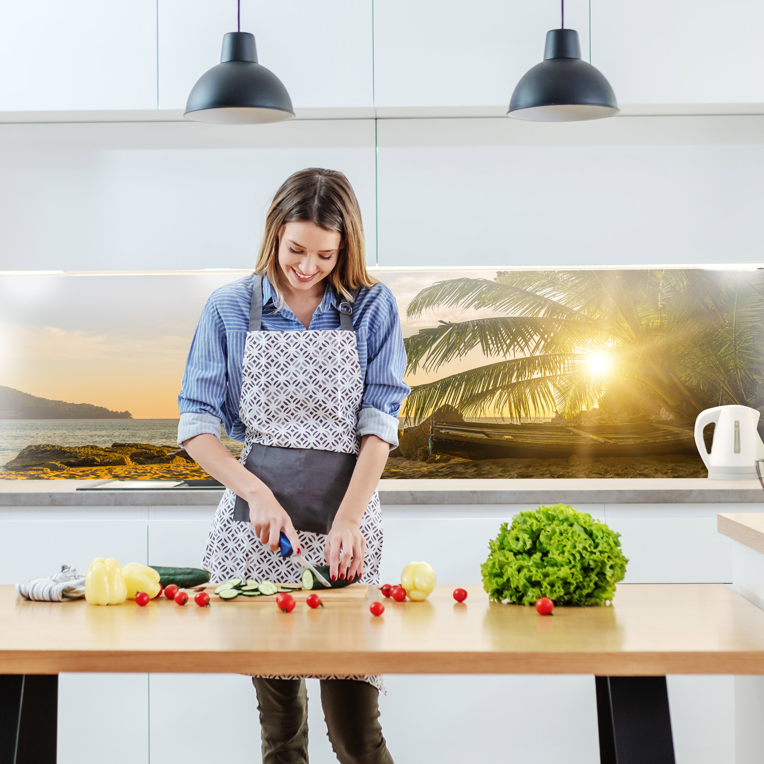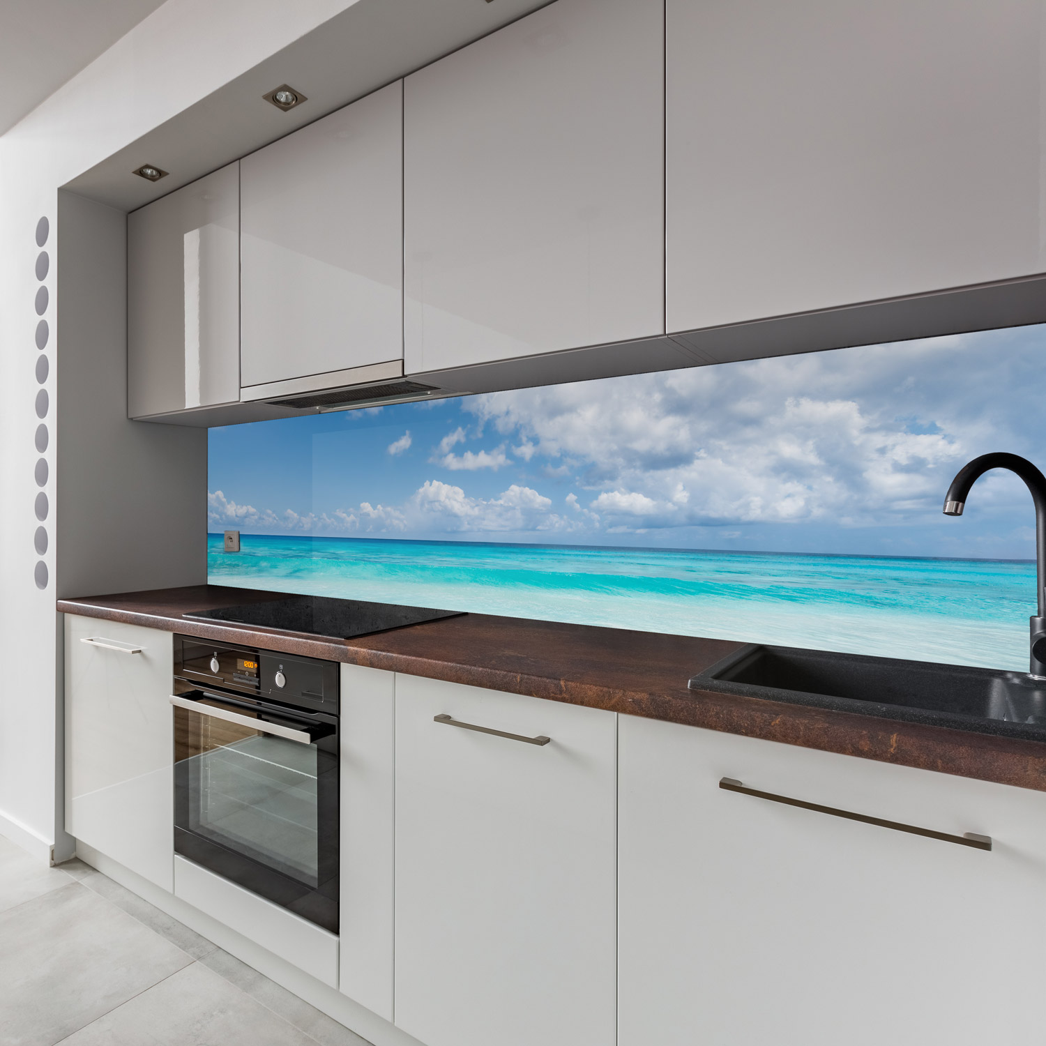 Küchenrückwand mit Strand V3 Motiv als Fliesenersatz und Spritzschutz