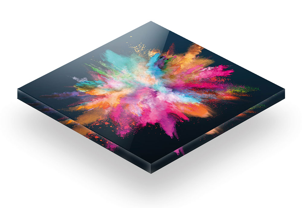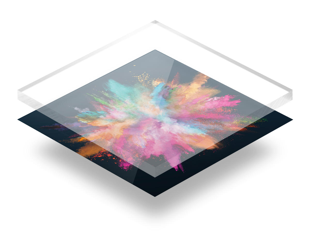 Nach mehreren chemischen Prozessen entsteht ein leichter, widerstandsfähiger Werkstoff in Glasoptik. Acrylglas ist leicht, bruchsicher und Temperaturschwankungen gegenüber unempfindlich. Die Bilder haben hinter Acrylglas eine volle, edle Wirkung. Weiterhin wird die Farbbrillanz des Bildes hervorgehoben und die Tiefenwirkung verstärkt.