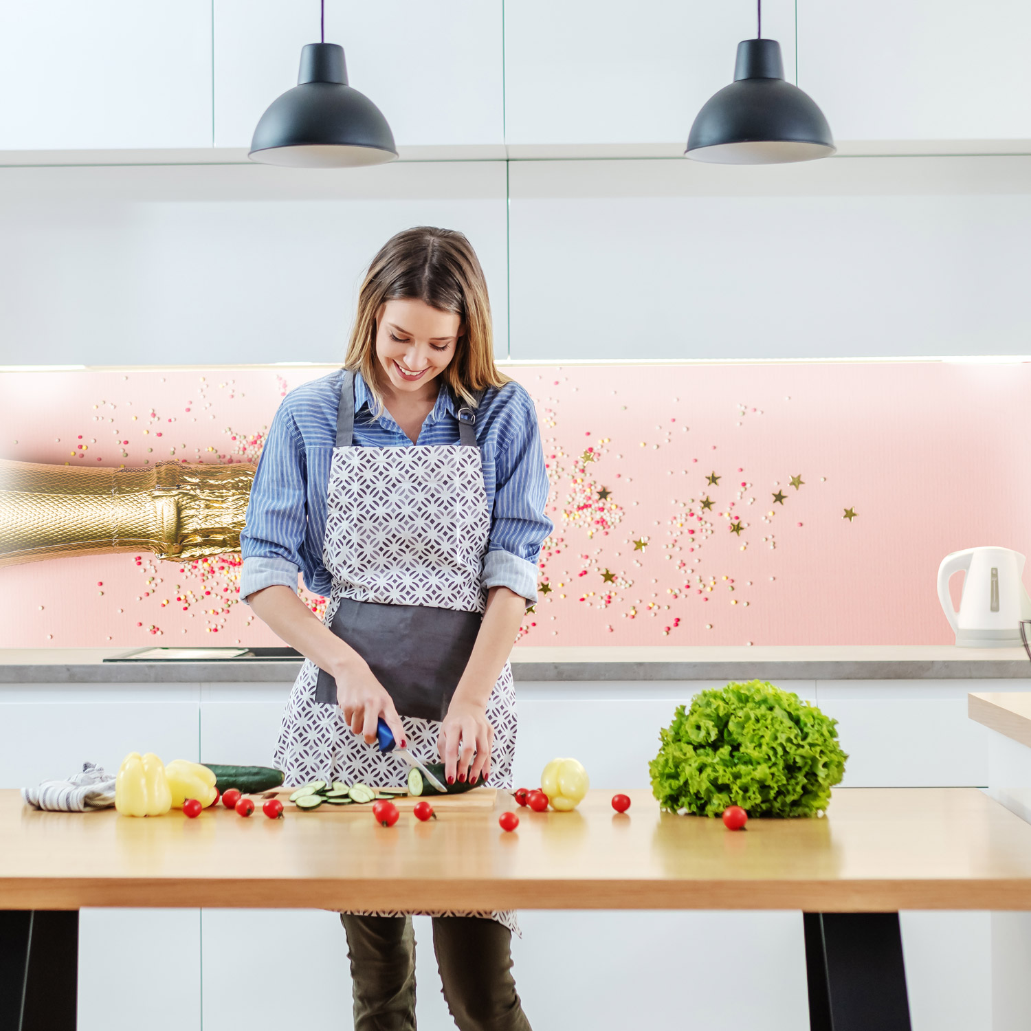 Küchenrückwand mit Cheers V1 Motiv als Fliesenersatz und Spritzschutz