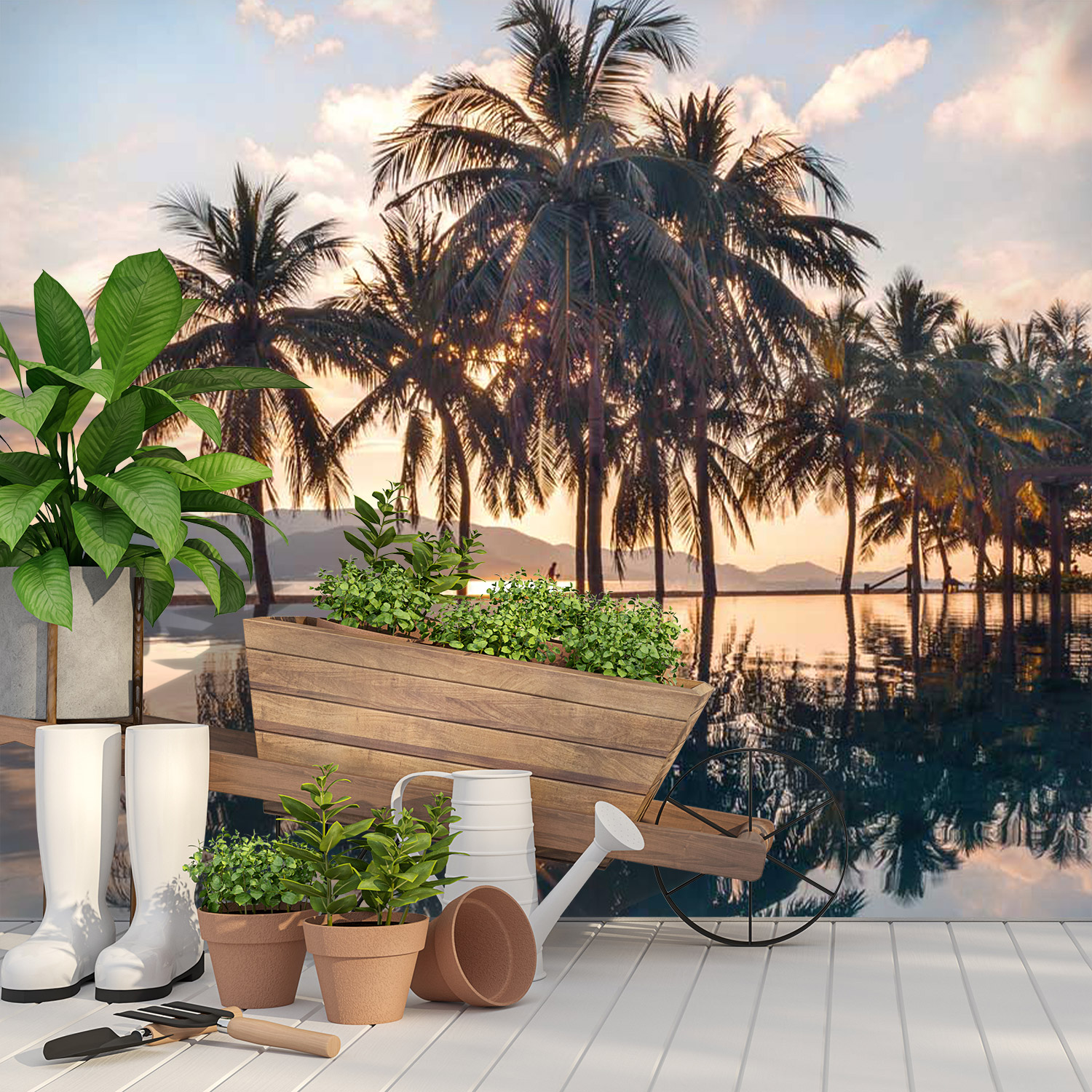 Wandverkleidung für den Outdoorbereich mit Palmen V1 Motiv