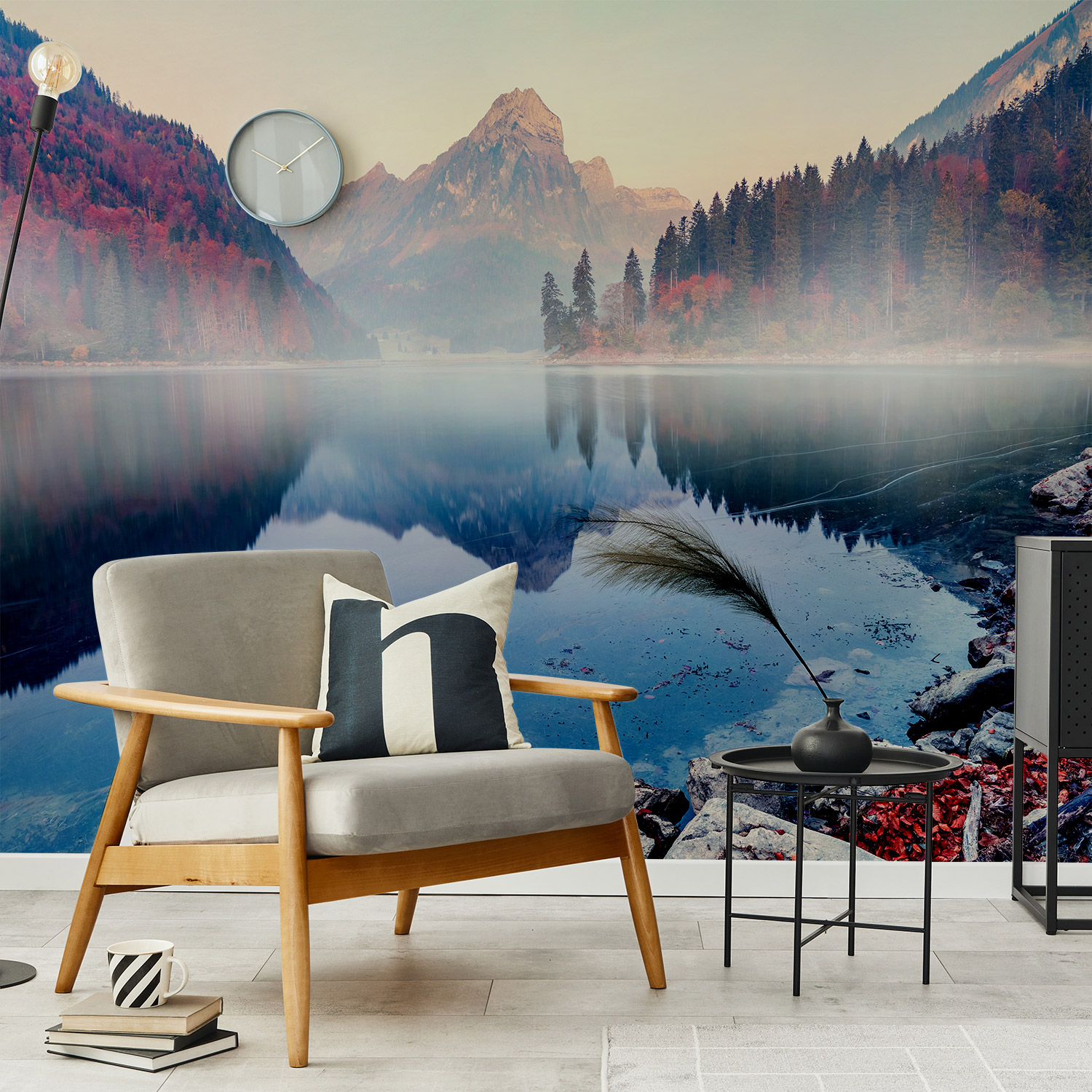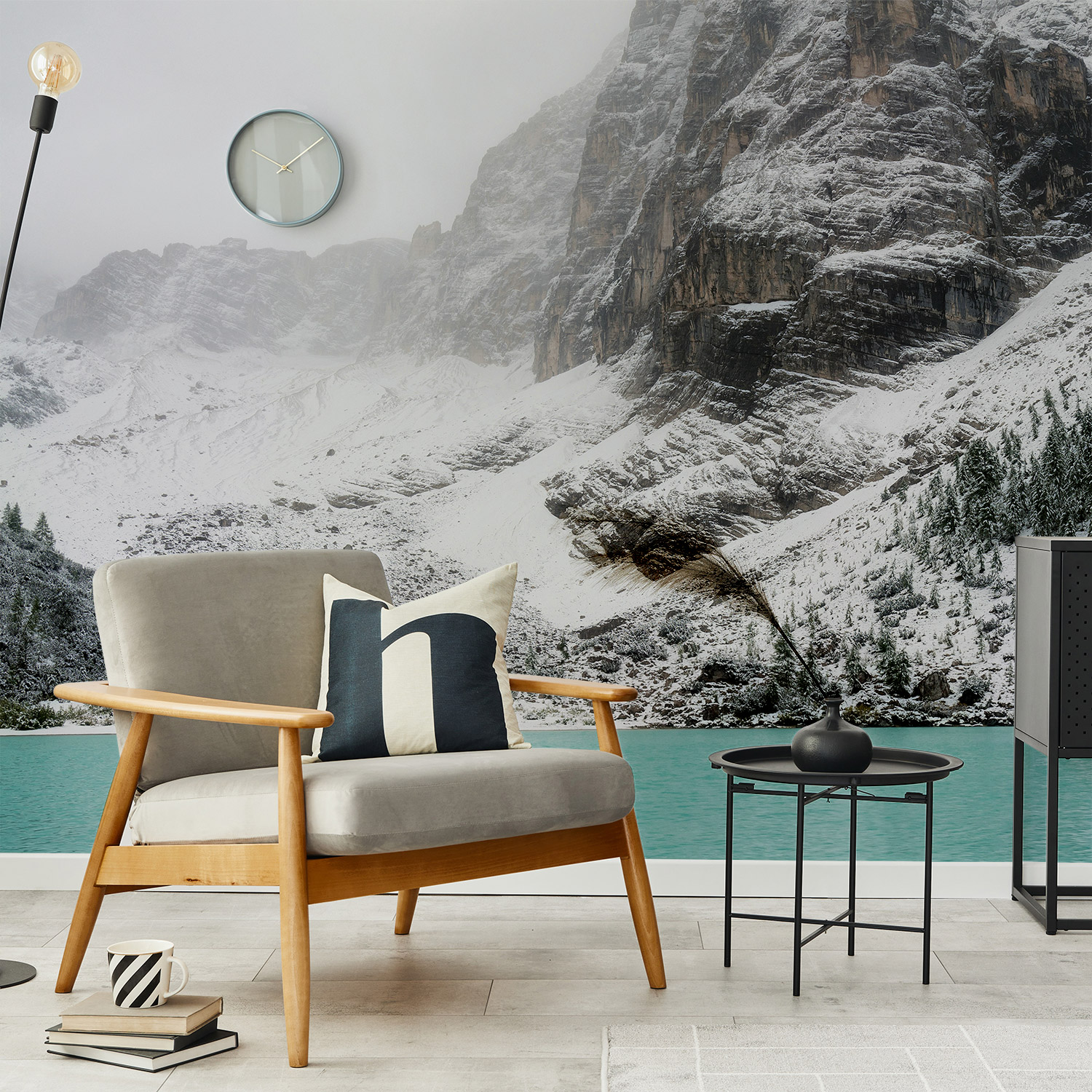Wandverkleidung für das Wohnzimmer mit Berg V1 Motiv
