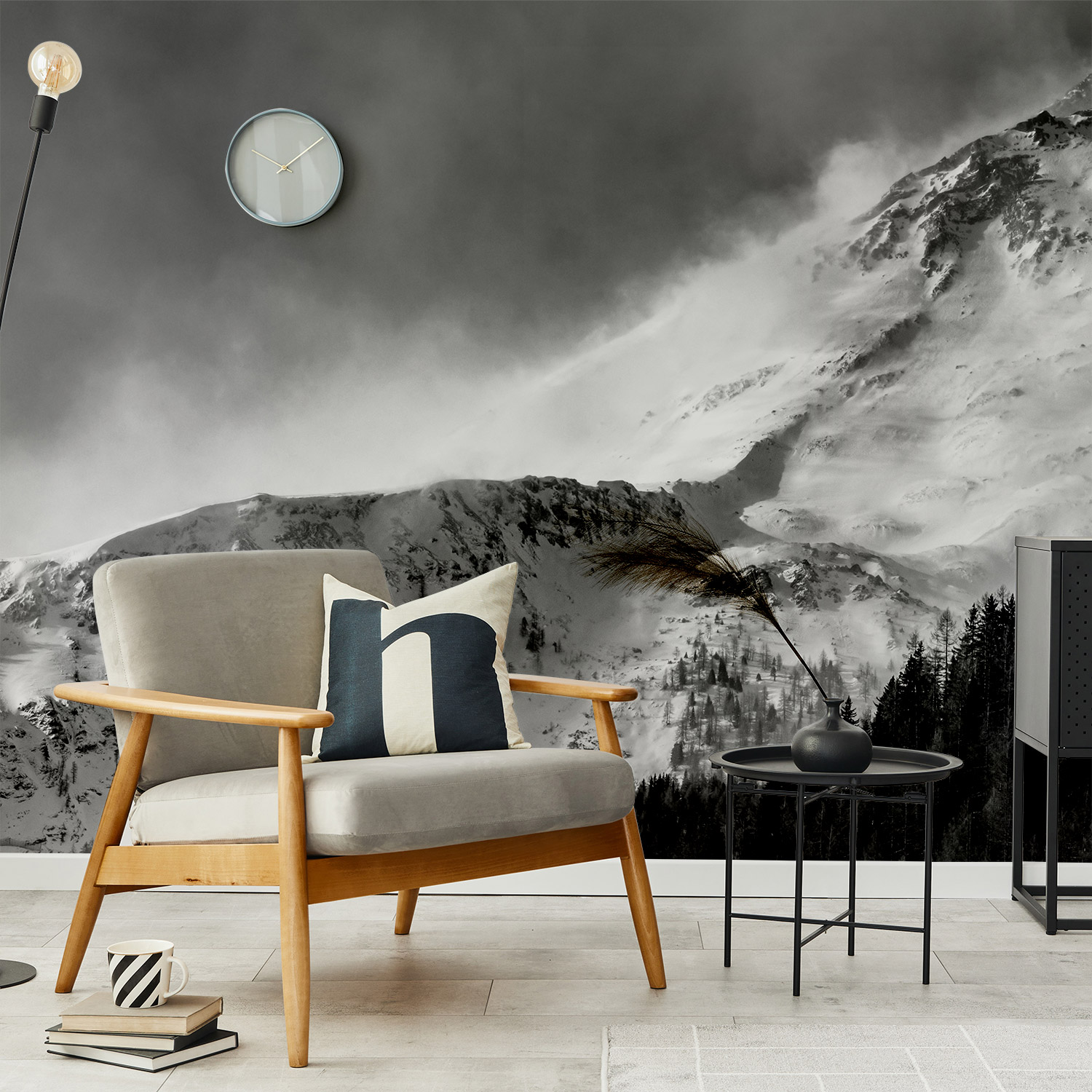 Wandverkleidung für das Wohnzimmer mit Berg V4 Motiv