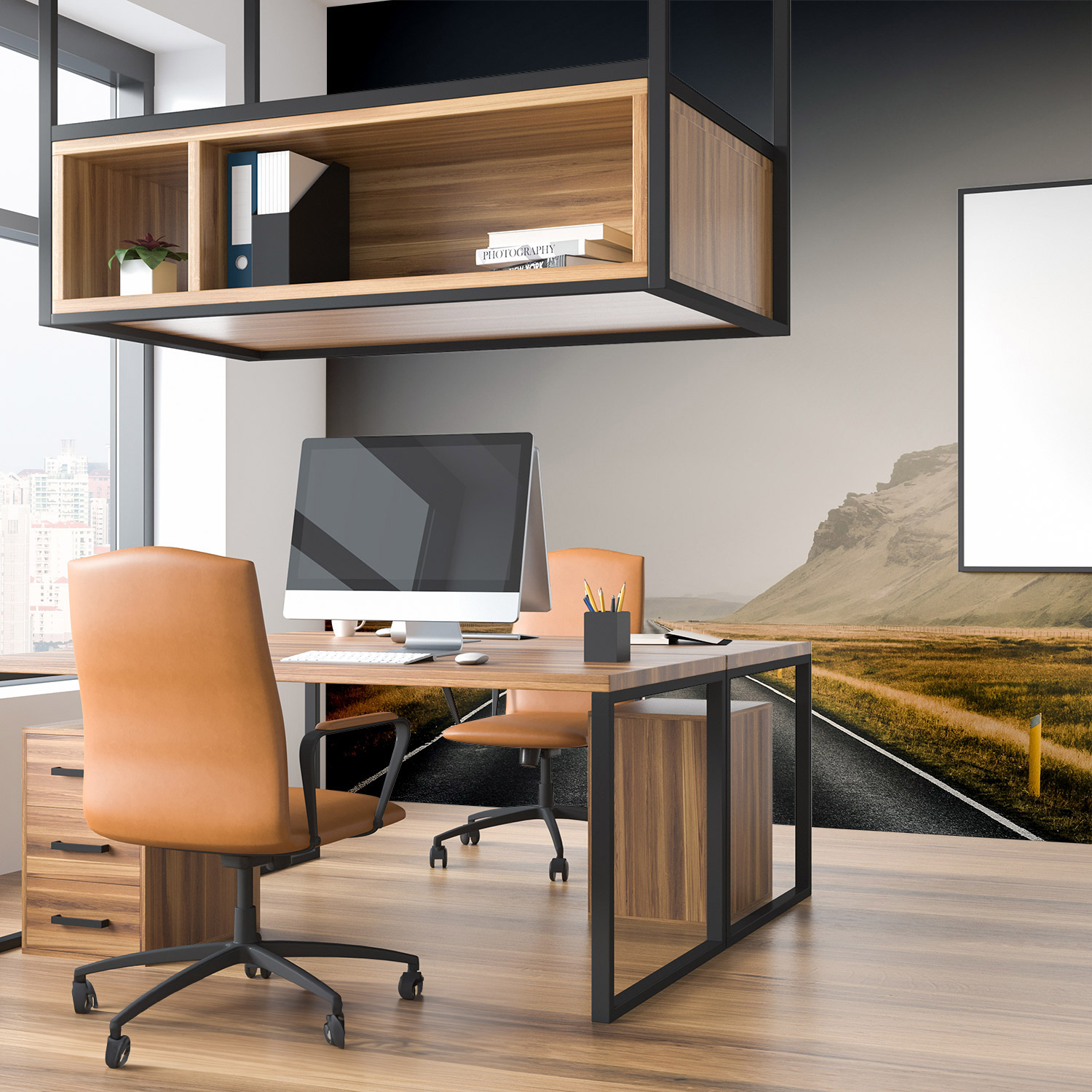 Wandverkleidung für das Büro mit Highway V1 Motiv