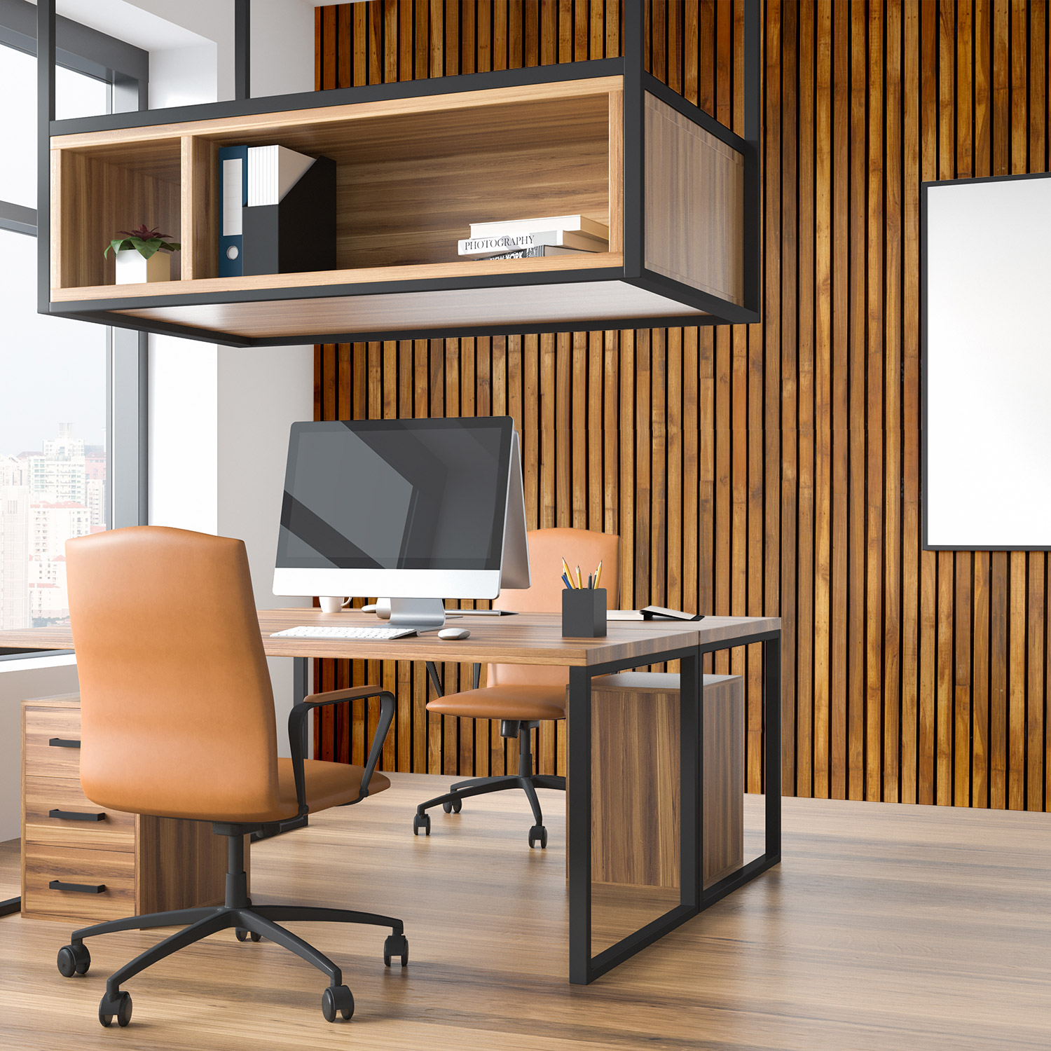 Wandverkleidung für das Büro mit Holz V6 Motiv