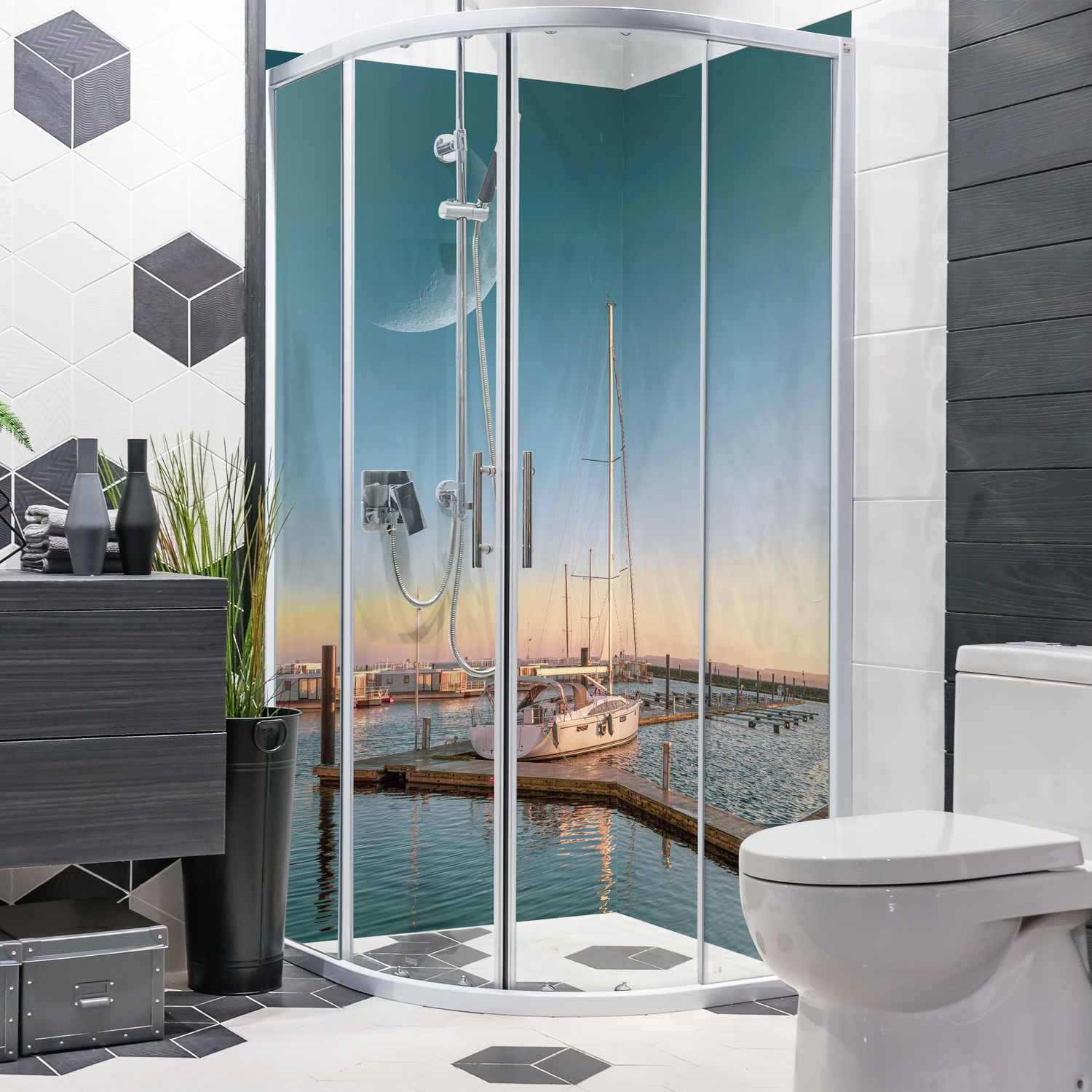 Duschrückwand mit Hafen V1 Motiv, als Badrückwand zum Fliesenersatz