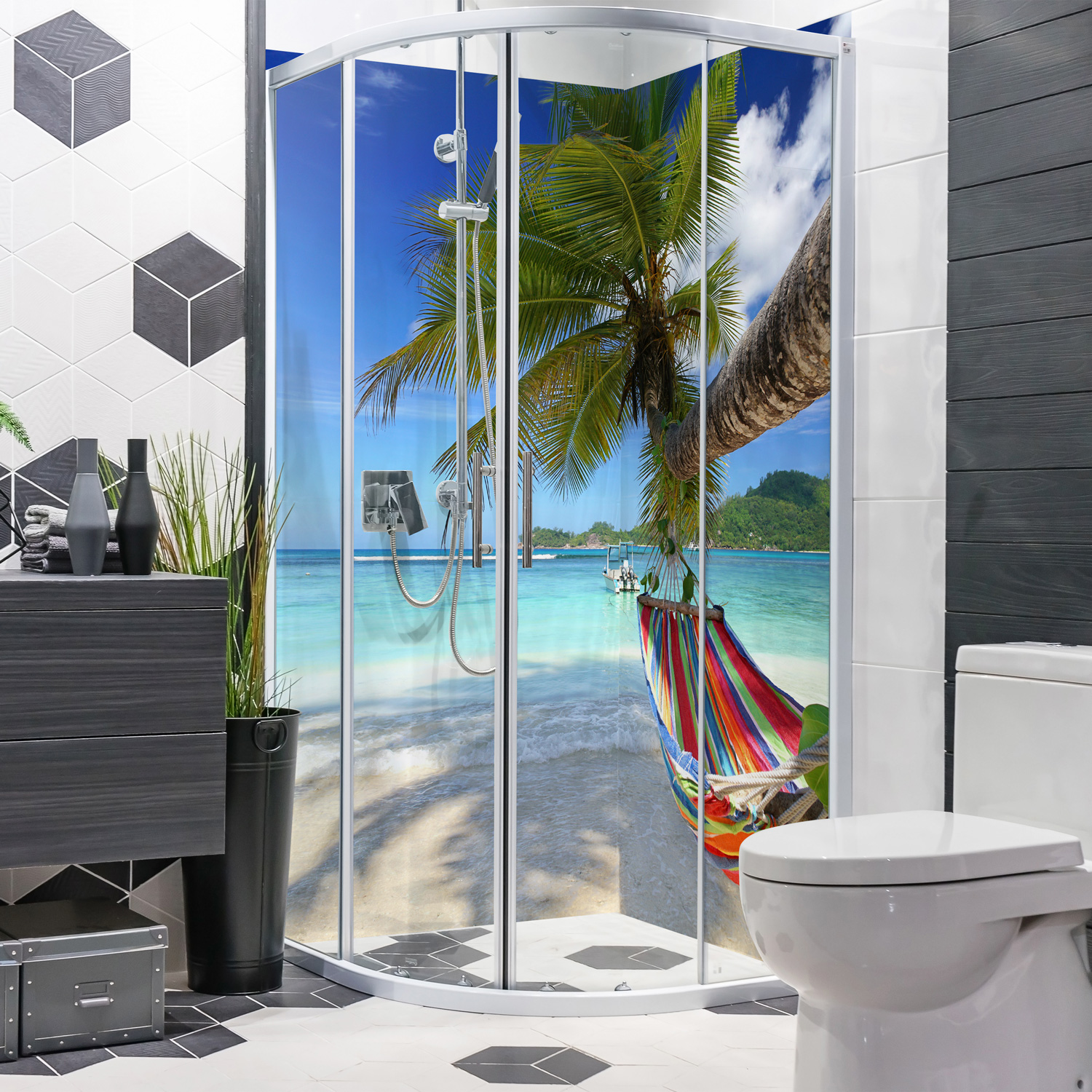 Duschrückwand mit Strand V4 Motiv, als Badrückwand zum Fliesenersatz