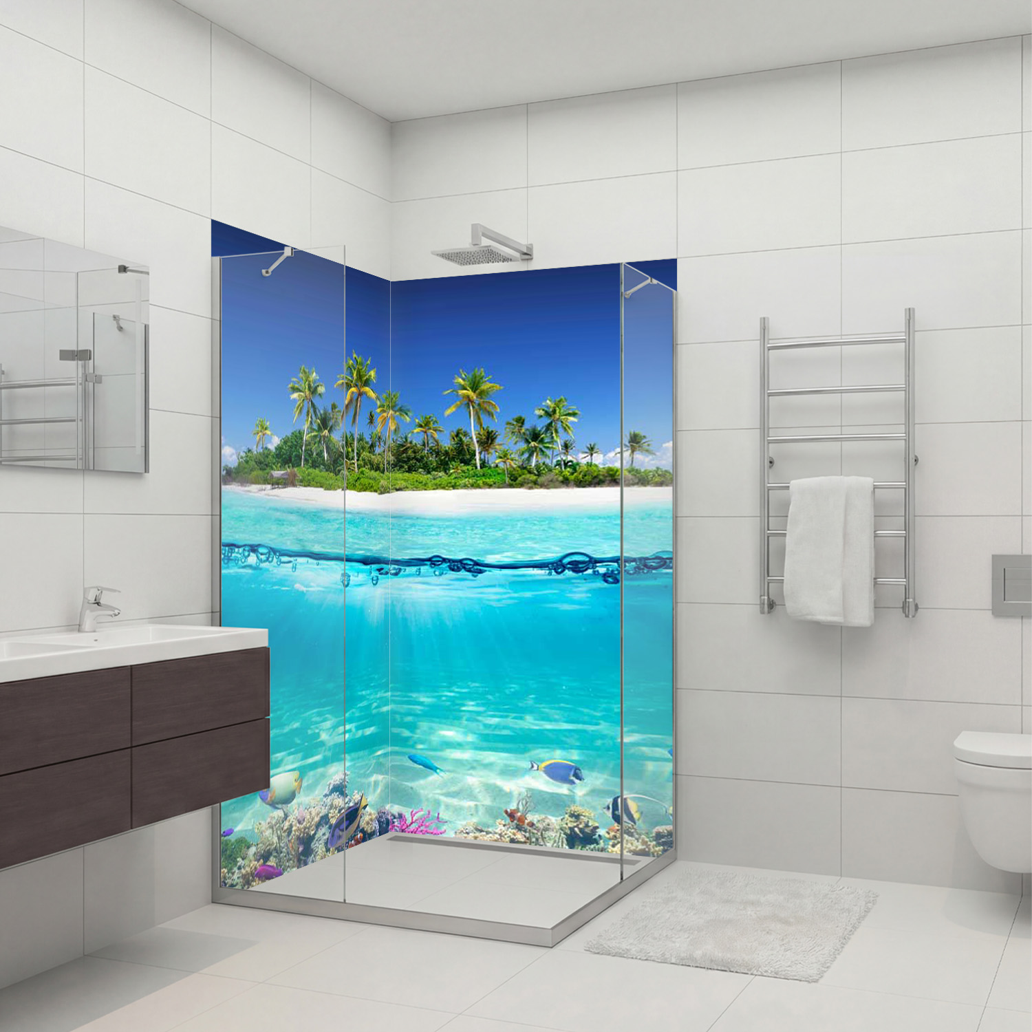 Duschrückwand mit Strand V6 Motiv, als Badrückwand zum Fliesenersatz