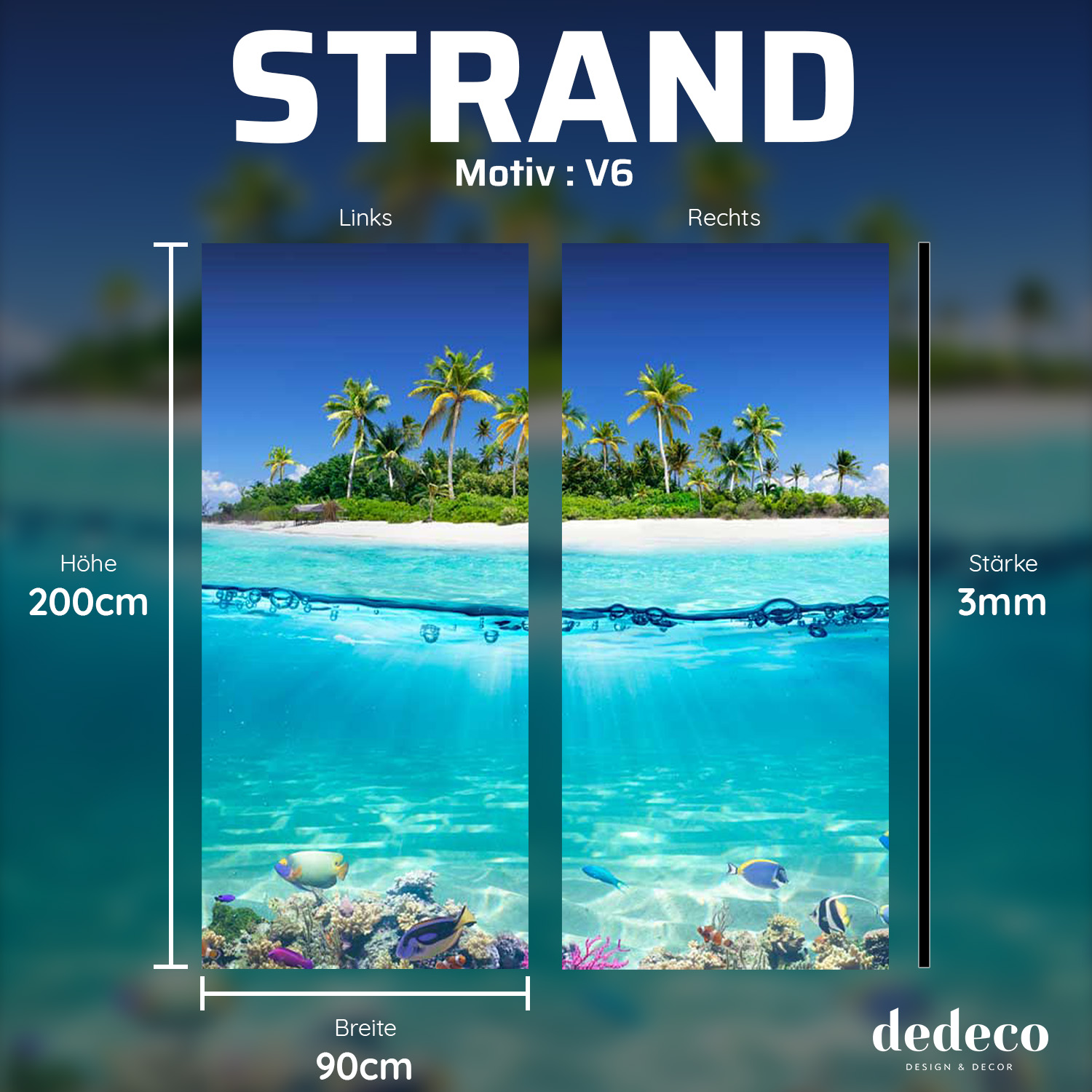 Inspiriere dich und entdecke neue Gestaltungsmöglichkeiten!Mit den Duschrückwänden von Dedeco bringst du dein Badezimmer auf ein neues Level. Du setzt mit den Motivrückwänden nicht nur ein Highlight in den vier Ecken deiner Wohlfühloase, sondern ersparst dir auch das mühselige Abziehen und Putzen von Wasserresten.Die Rückwände bestehen aus widerstandsfähigen Materialien und können vor Ort ohne jegliche Vorkenntnisse und großen Montagearbeiten - wie Bohren oder Sägen - leicht, schnell und problemlos auf die Fliesen angebracht werden. Eine Anpassung ist ebenfalls möglich, da die Duschplatten sich auch individuell zuschneiden lassen. Die nahtlose Montage bietet keinen Platz für Schimmel und konserviert die darunter liegenden Fliesen.Die wasserabweisende Beschichtung sorgt nicht nur für eine erleichternde Reinigung der Dusche, sondern bietet dadurch ebenfalls nur wenig Angriffsfläche für weiteren Schmutz. Hier findest du passendes Zubehör für die Montage und Pflege. Du bist dir noch nicht sicher, welches Material am besten zu dir und deinem Vorhaben passt? Weitere Infos zu unseren Materialien findest du in dem Video: Unsere Materialien.Spezifikationen:Ausgezeichnete Qualität: Hochwertige Materialien und satte, intensive Farben sorgen für ein ganz neues Wohlbefinden in deinem Badezimmer. Exzellenter Digitaldruck sorgt für die beste Farbbrillanz mit 3D OptikEinfache Bearbeitung & Montage: Leichte und schnelle Montage mithilfe von Montagekleber, ohne Bohren oder Sägen. So wird das Renovieren des eigene Bades auch ohne Vorkenntnisse zum Kinderspiel. Langlebig & wasserfest: Die Rückwände sind robust, wasserdicht und können direkt auf alte Fliesen oder Putz angebracht werden. Die nahtlose Montage bietet keinen Platz für Schimmel und konserviert die darunterliegenden FliesenFugenlos, sauber & hygienisch: Die besonders glatte Oberfläche mit der wasserabweisenden Beschichtung ist nicht nur leicht zu reinigen, sondern bietet dadurch kaum Angriffsfläche für weiteren Schmutz und erleichtert somit die BadreinigungAlles aus einer Hand: Das passende dedeco Montageset findest du ebenfalls in unserem Shop. Auf Anfrage bzw. mithilfe unseres Konfigurators kannst du deine perfekten Duschrückwände auf Maß bestellen Anmerkung: Bitte beachte, dass das Motiv entsprechend der Plattengröße runter bzw. rauf skaliert wird. Ggf. können die Druckfarben von der digitalen Darstellung auf dem Monitor minimal abweichen.