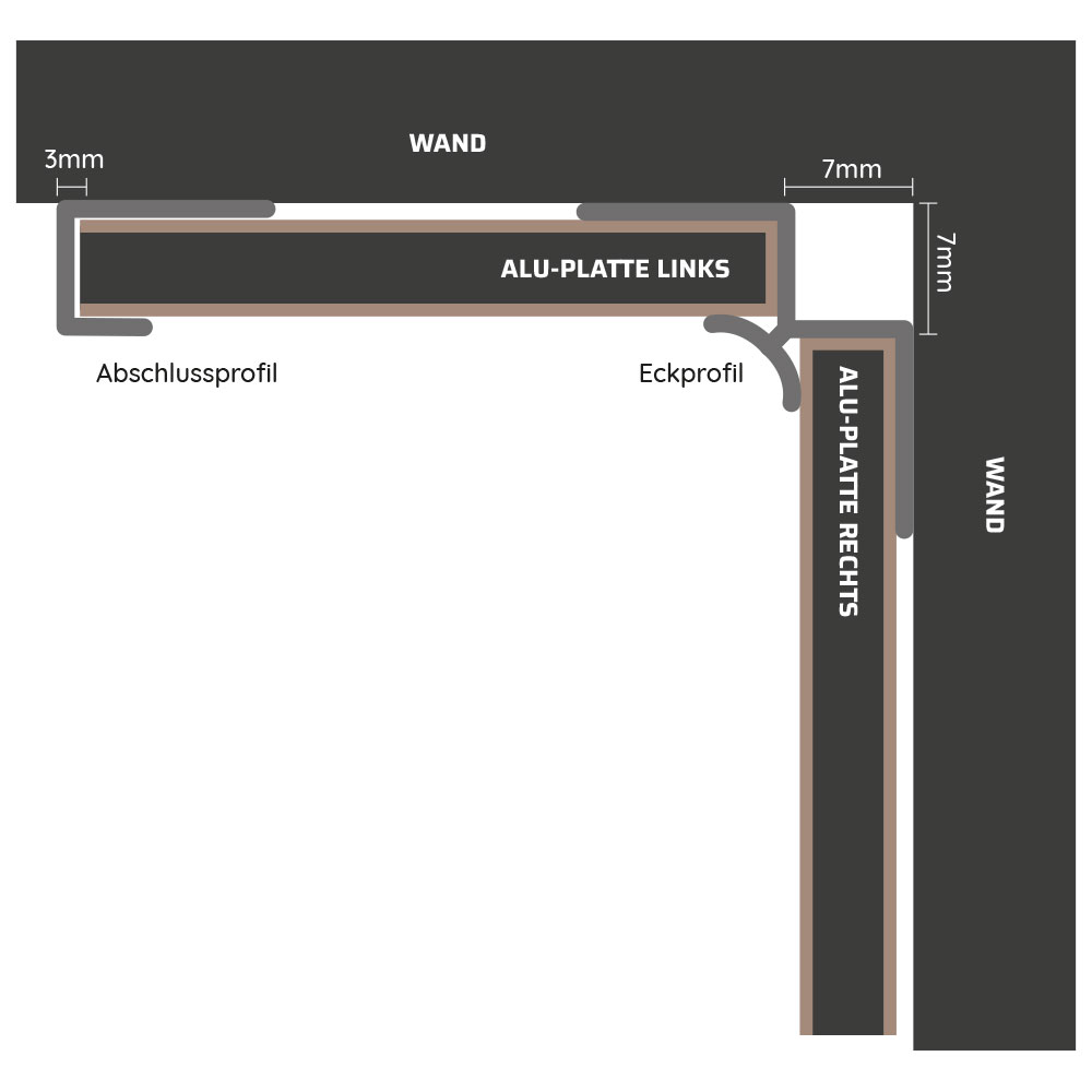 - Bei Verwendung von Eck- und Abschlussprofil: Gemessene Breite abzüglich 10mm pro Platte