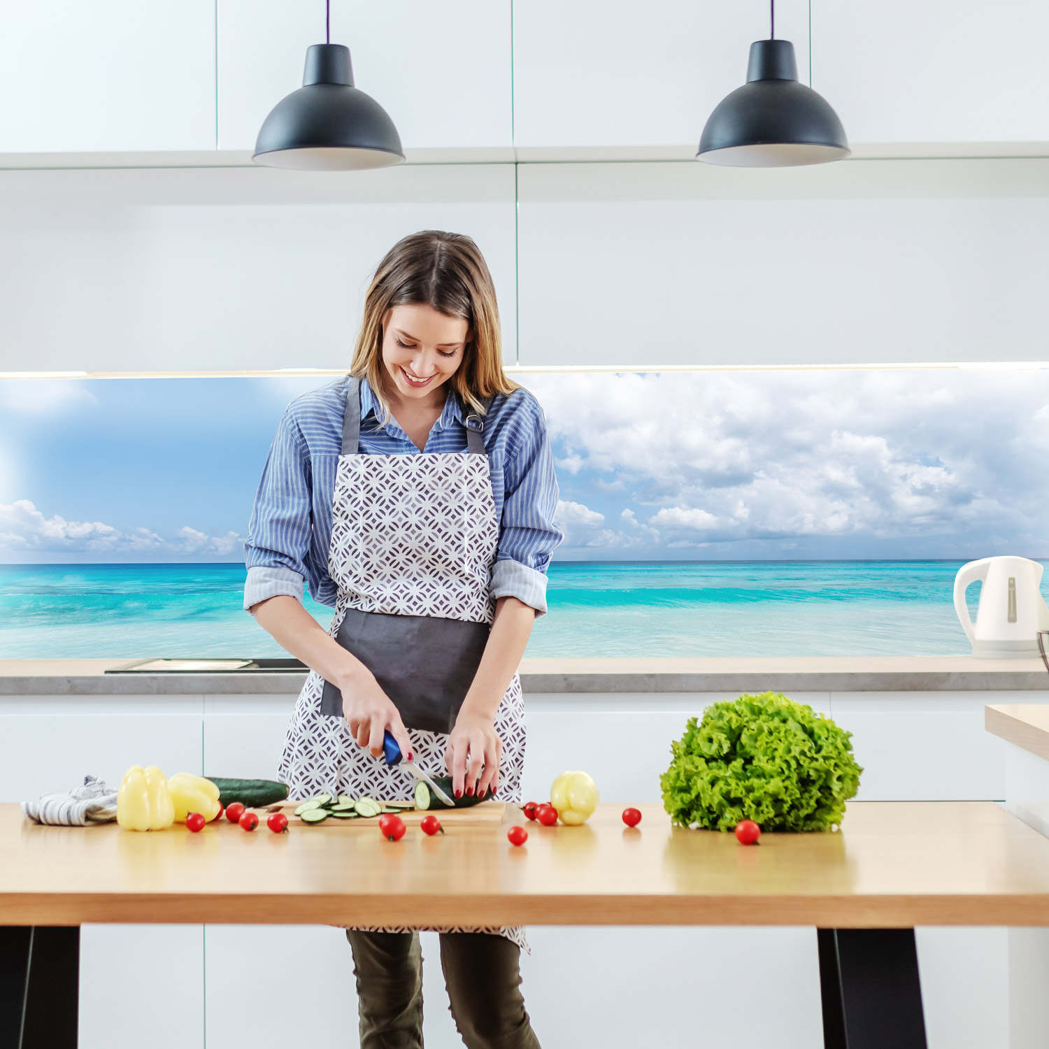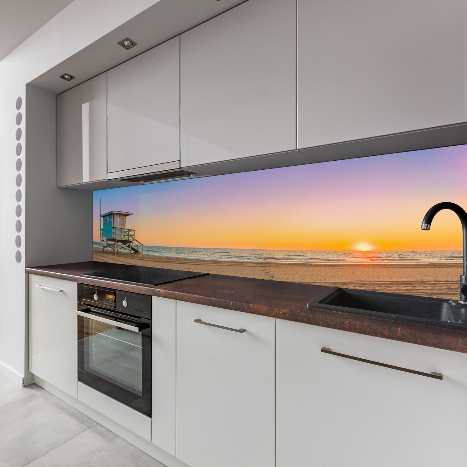 Küchenrückwand mit Strand V4 Motiv als Fliesenersatz und Spritzschutz
