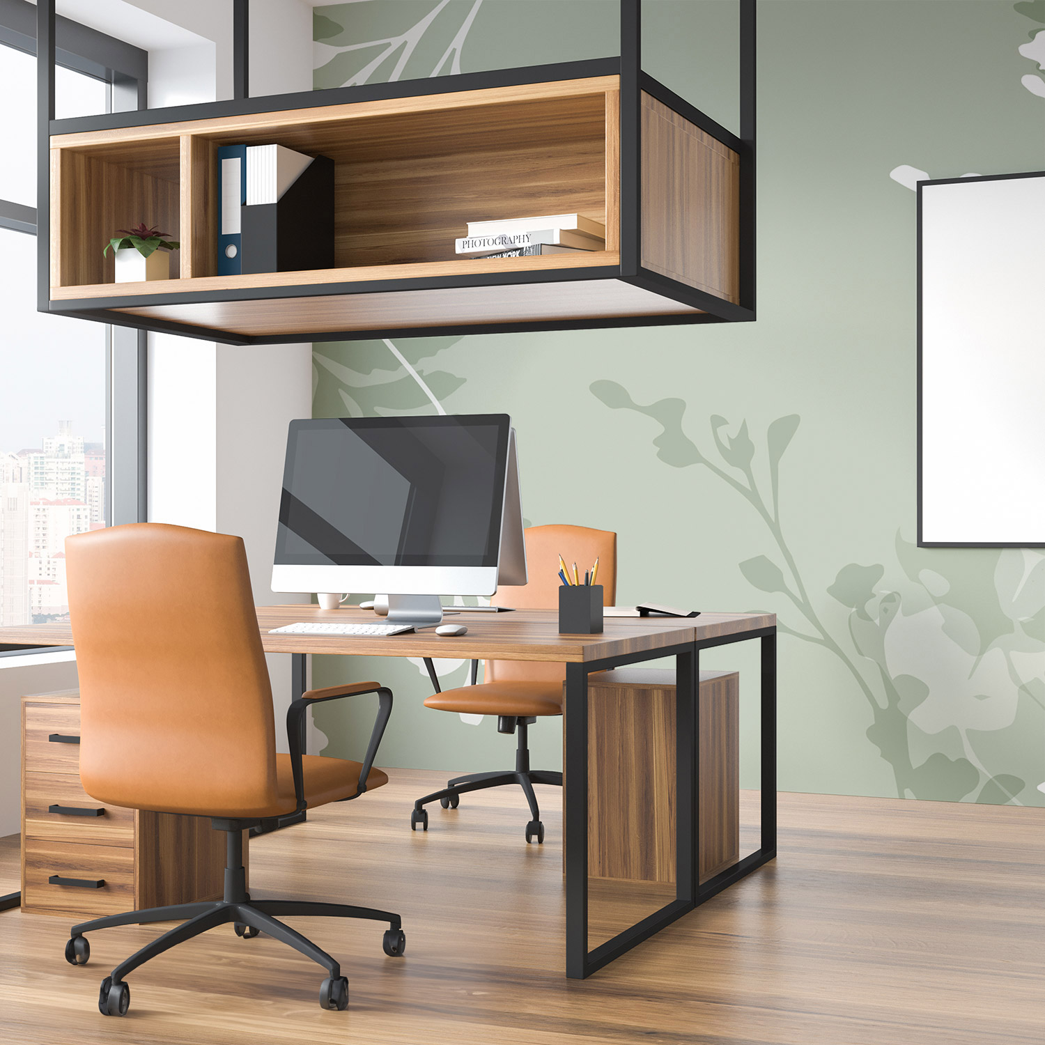 Wandverkleidung für das Büro mit Kunst V7 Motiv