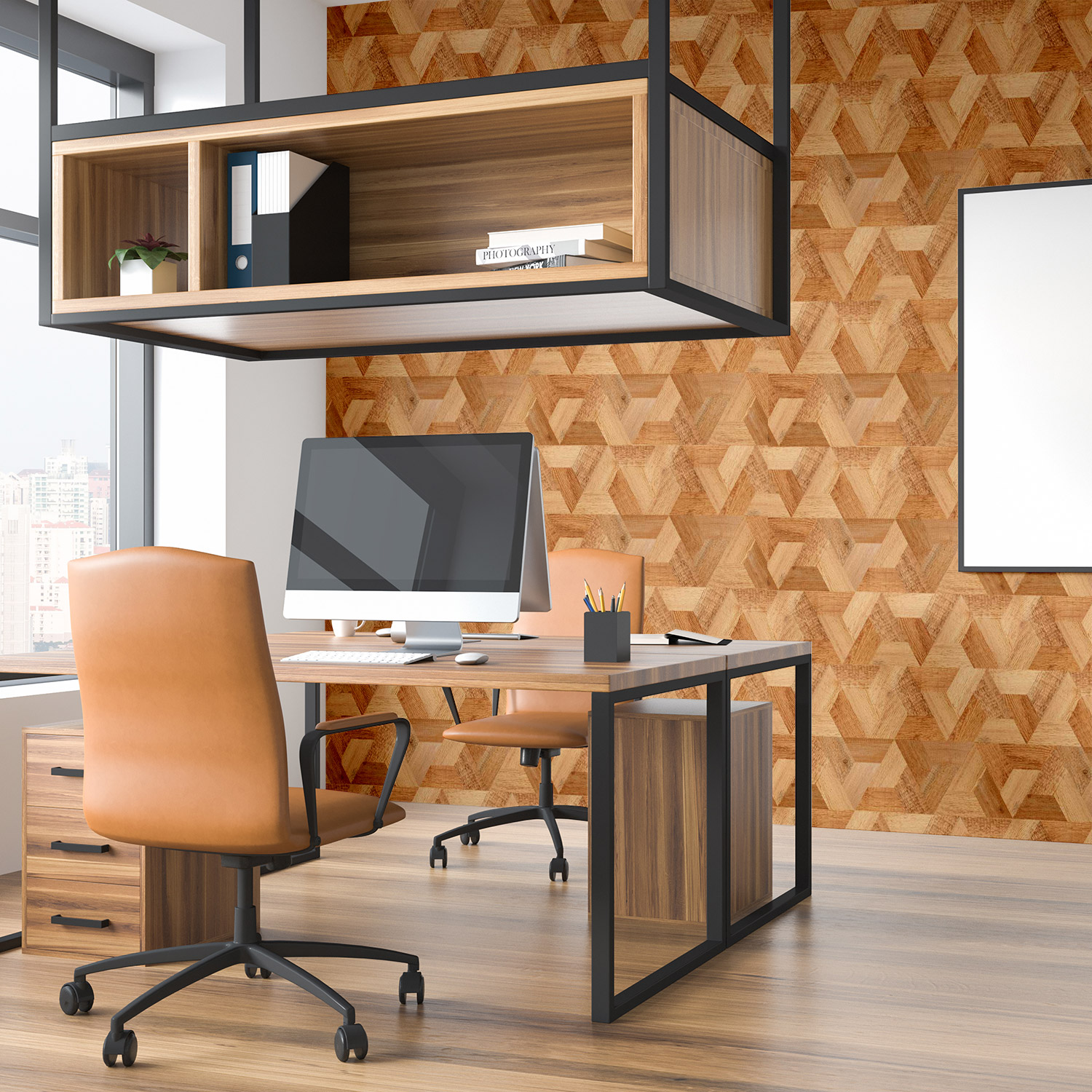 Wandverkleidung für das Büro mit Holz V2 Motiv