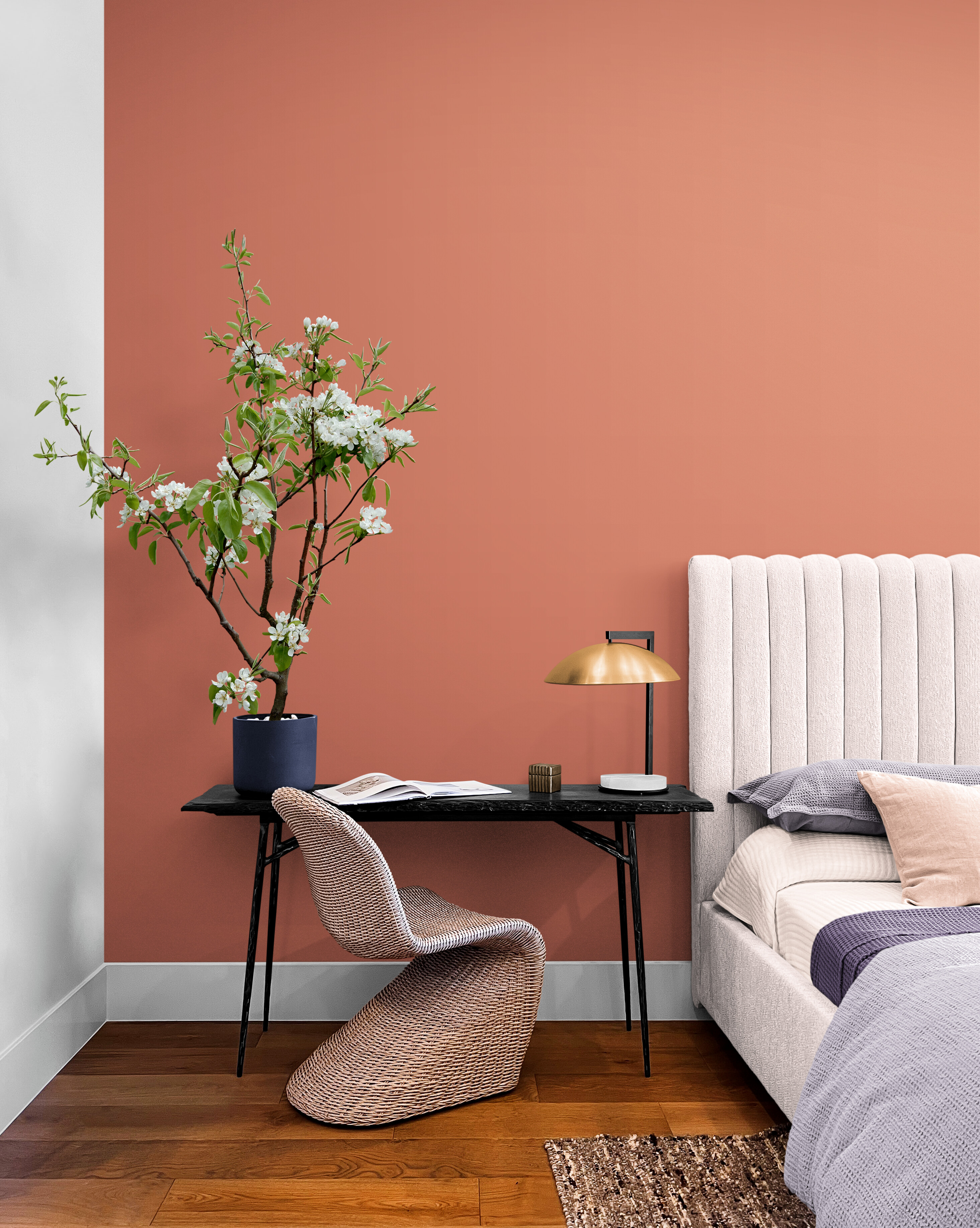Wandverkleidung für das Schlafzimmer in Pastellrot Unifarbe